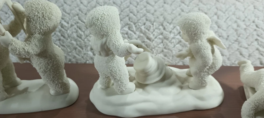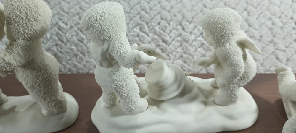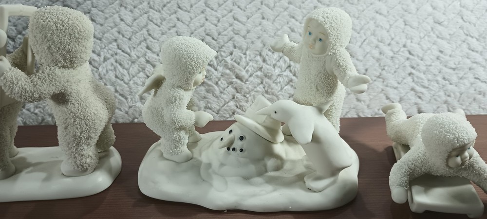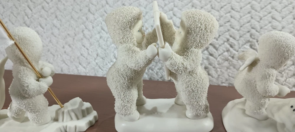This lot consists of six vintage Department 56 Snow Babies figurines. These adorable figurines feature snowflakes and are made of ceramic and porcelain. They were manufactured between 2000-2009 and are perfect for collectors of all ages, including teens, adults, and girls. The white color and snow theme make them a great addition to any holiday or seasonal collection. Whether you're a fan of Department 56 or just love these cute figurines, this lot is a must-have for any collector.