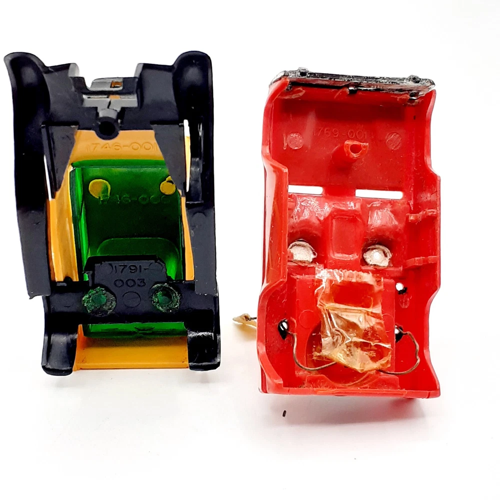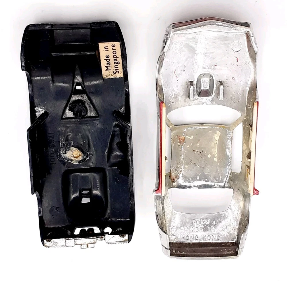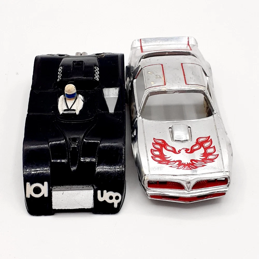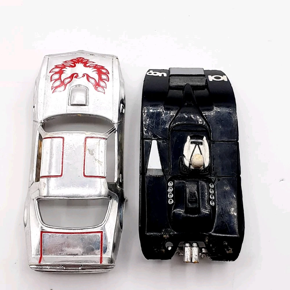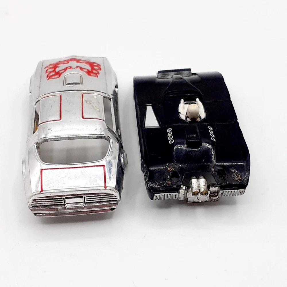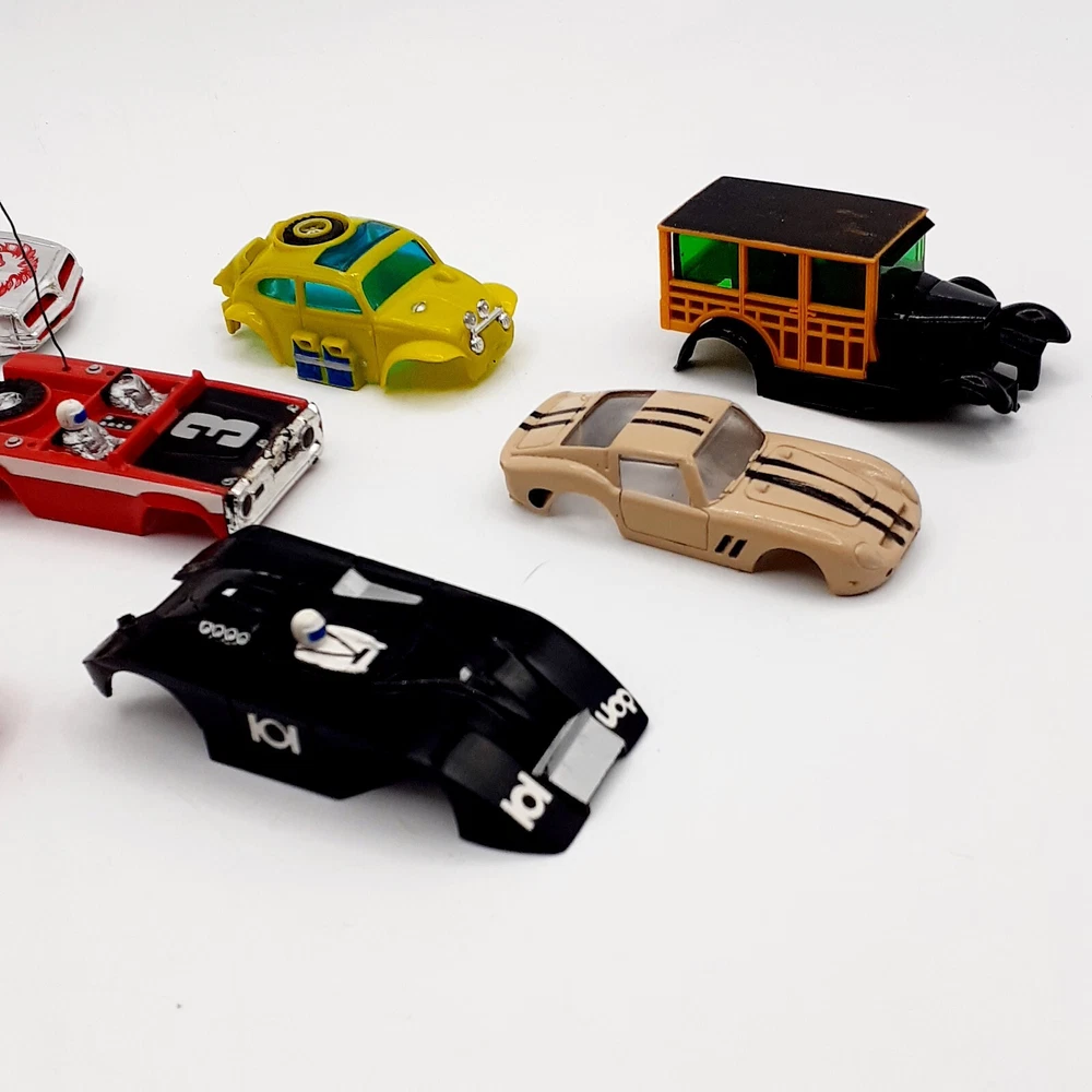One of the Volkswagen beetle is missing the front bumper assy. The other Volkswagen beetle is missing the left headlamp. One of the black race cars' front post is split but still takes & holds a screw. Please view the photos for the best condition description. I do combine shipping and thanks for visiting my store, I certainly appreciate ya!! 👽🦩🛸