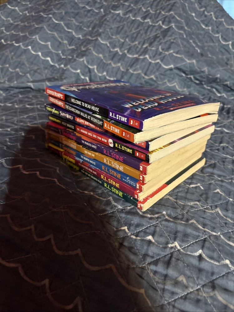 All in decent condition. Have little wear from time. Lot includes the following: 1. Welcome to dead house 2. The scarecrow walks at midnight 3. Slappyworld: Slappy Birthday to You 4. Most wanted: Dr. Maniac will see you now 5. The headless ghost 6. Bad Hare Day 7. The haunted mask II 8. egg monsters from mars 9. how I got my shrunken head