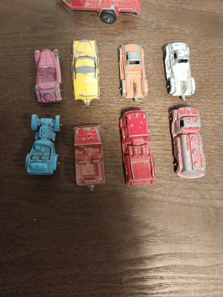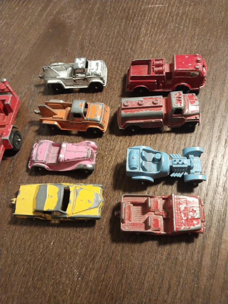 The product is a lot of 9 vintage Tootsietoy and Midgettoy mini diecast metal vehicles, including cars and trucks. These vehicles are made of diecast material and feature a multi-color design. The vehicles are from the brand Tootsietoy and are in the shape of Jeeps. Perfect for collectors of vintage diecast vehicles, this lot offers a variety of mini vehicles in different styles and colors.