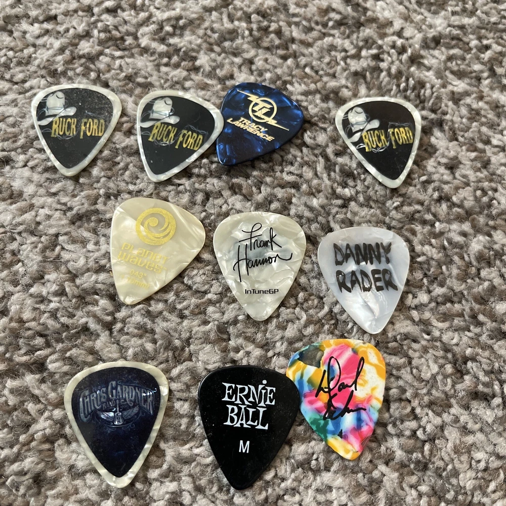 Lot Of Guitar Picks Ernie Ball Tracy Lawrence Danny Rader Frank Hannon. Condition is Used. Shipped with USPS Ground Advantage.