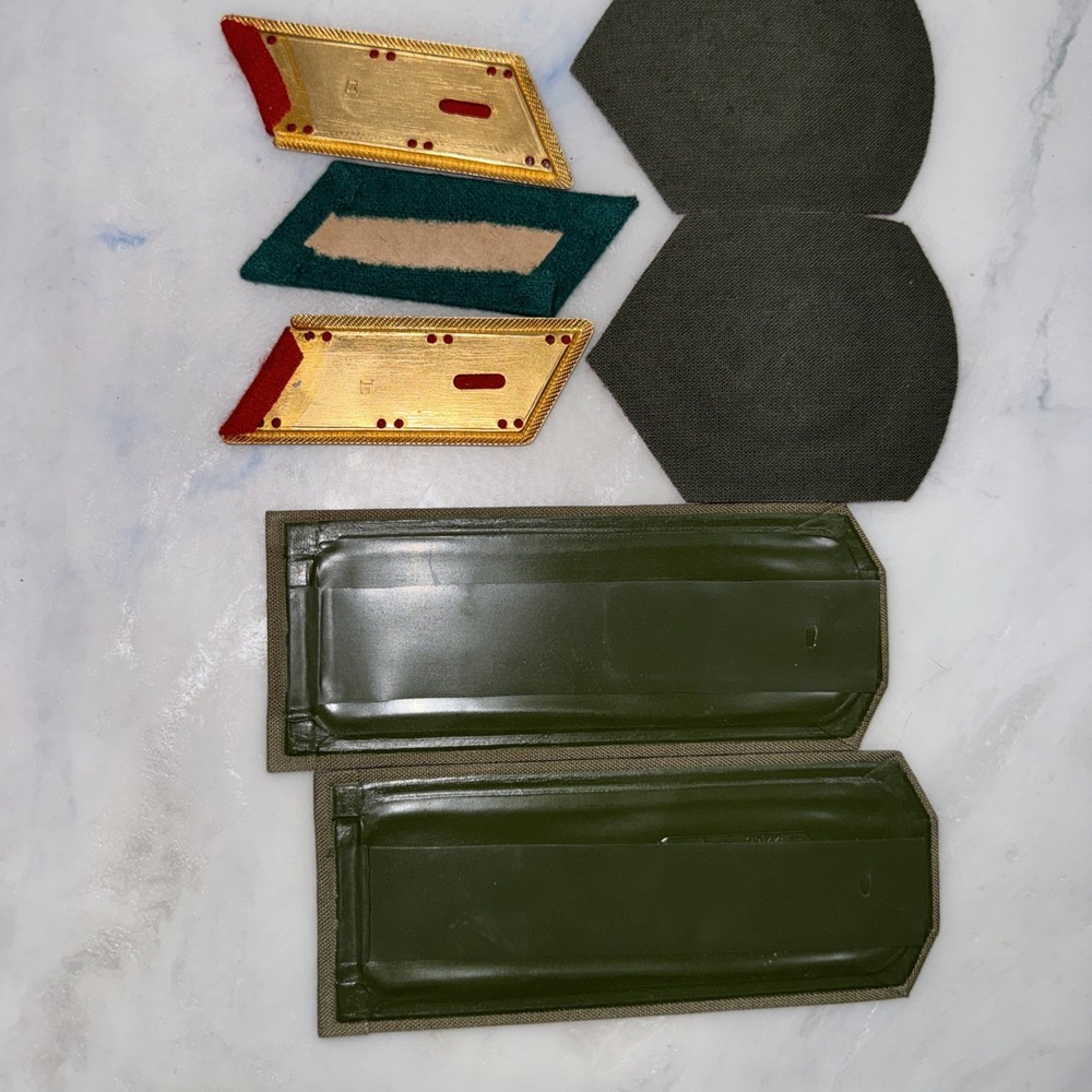 Mixed lot of Soviet / Russian military uniform insignia and shoulder board pieces. Includes shoulder board backings, fabric collar tabs, and an embroidered Soviet red star patch. Items appear to be surplus or reproduction and are sold as-is. Great for collectors, reenactors, or display. Includes (as pictured): • 1 Soviet-style green slip-on shoulder board • 1 olive hexagonal sleeve or shoulder patch backing • 1 embroidered red & gold Soviet star patch • 1 gold-tone shoulder board backing plate with red cloth • 1 red fabric tab • 1 green fabric tab Condition • Pre-owned • Some items show light wear from age/storage • Sold as a mixed lot Perfect for anyone collecting Soviet military memorabilia or creating displays, reenactments, or costume builds.