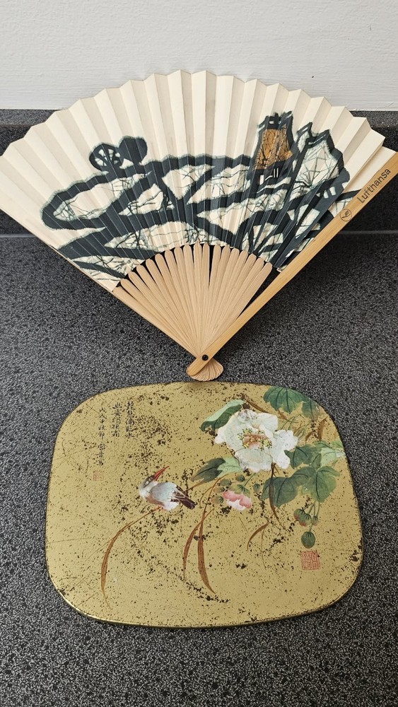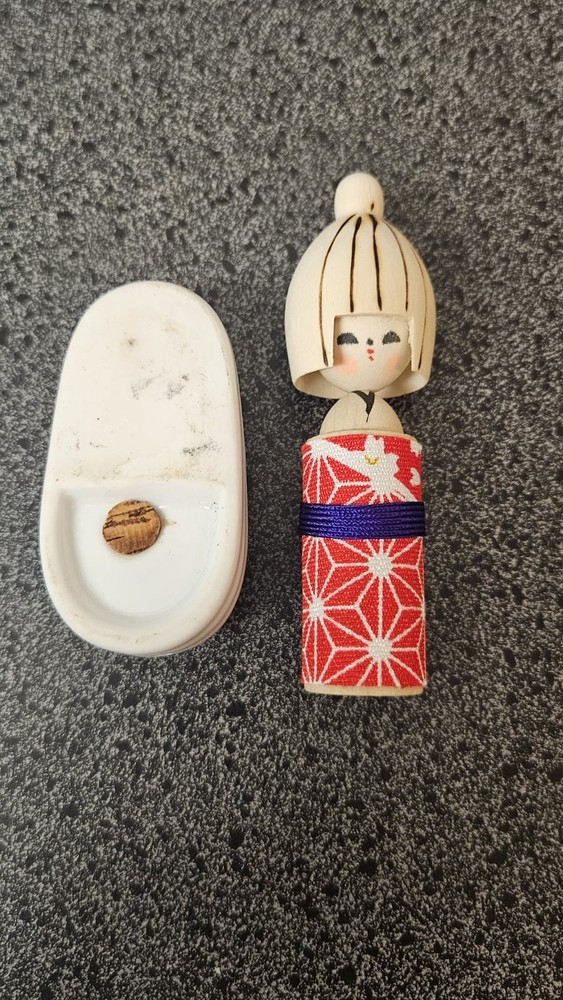 Lot of 7 Japanese items and trinkets in good used condition. Please see photos for general signs of use and aging. $25 for all items. Includes: 1 Wrapped chopstick set 1 Small wooden doll 1 Small wooden standing sign 1 Metal bird/flower tray 1 Sandal salt/pepper figurine 1 Paper fan 1 Japanese art box of matches