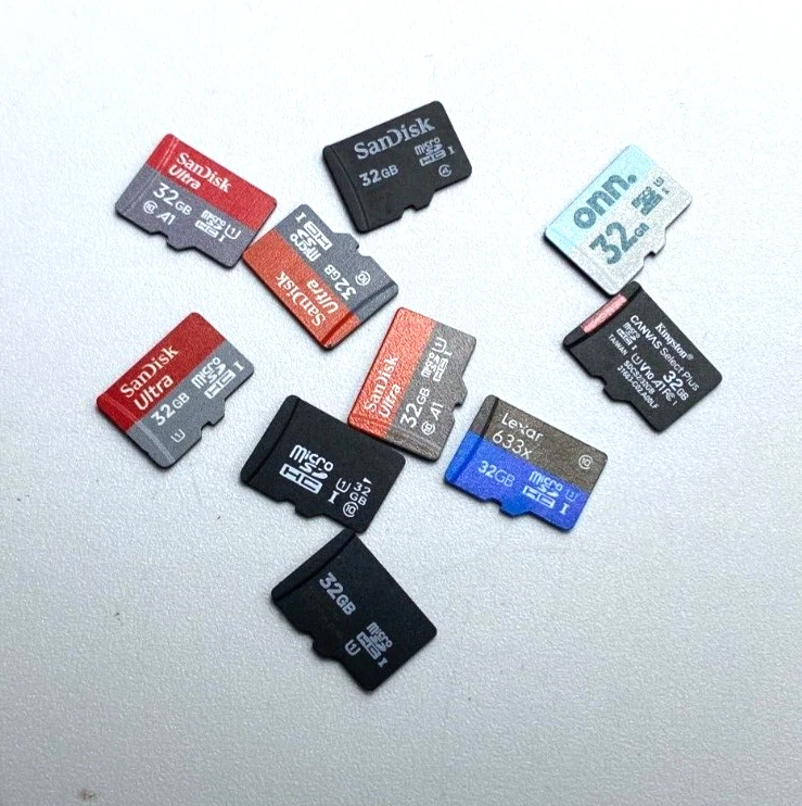 PAYMENT - Payment is due when item is ended. If payment is not received within 4 DAYS, the order will be automatically cancelled resulting in a strike on buyer's account. Buyers with 2 or more unpaid items will no longer be able to make offers or purchases from Warehouse Wireless. RETURNS - Returns are accepted within 60 days of purchase. We do not offer replacements or partial refunds. Original purchase price will be refunded after receipt of return. SHIPPING - USPS requires all electronics with lithium batteries be shipped using Parcel Select. Shipping times vary depending on location and are estimates only. Unfortunately, we are unable to offer USPS Priority or USPS Express shipping options. We offer Parcel Select service at no charge. Fed Ex Express services can be added at check out. Lot of 10 - 32GB - Used Mixed Brand MICRO SD Memory Cards Photo is representative of memory cards. Brands may vary from lots.