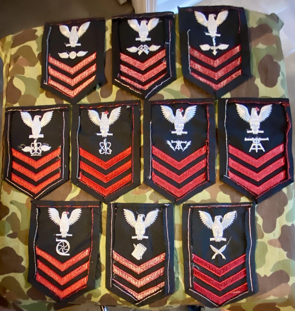 Lot of 10 different US Navy Rates Petty Officer 1st Class rank Patches USN PO1