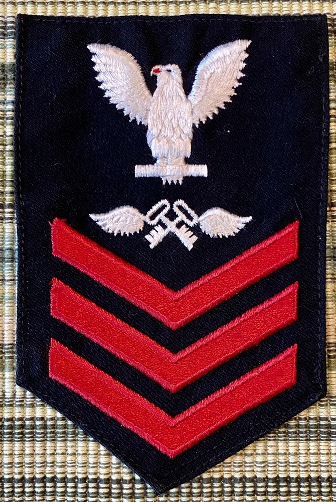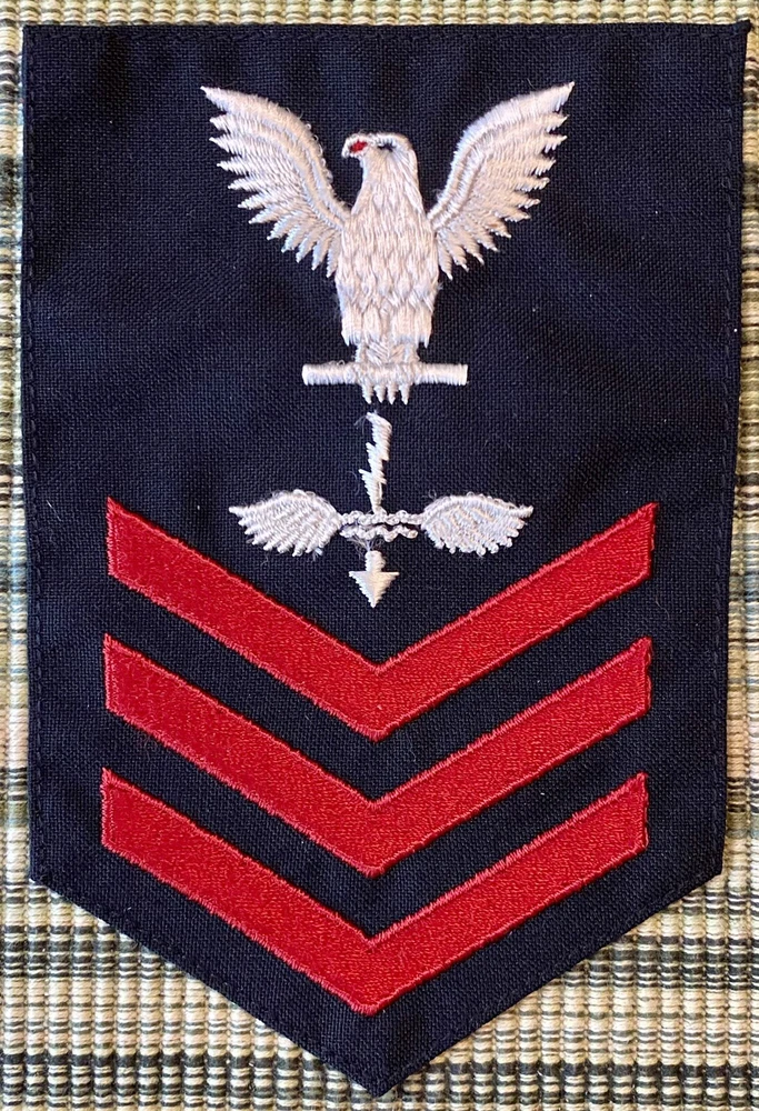 Lot of ten (10) different United States Navy Rates for Petty Officers 1st Class rank Patches. All these USN PO1 insignia have fully embroidered white eagles and specialty marks with embroidered, red chevrons on dark blue or black background material. Some of these patches have been removed from a uniform. Condition varies from very good to excellent, see photos. This lot includes the following rates: Aviation Electrician’s Mate (AE1) Aviation Storekeeper (AK1) Aviation Antisubmarine Warfare Operator (AW1) Aviation Antisubmarine Warfare Technician (AX1) Electronics Warfare Technician (EW1) Fire Controlman (FC1) Fire Control Technician (FT1) Gas Turbine Systems Technician (GT1) Personnelman (PN1) Yeoman (YN1)
