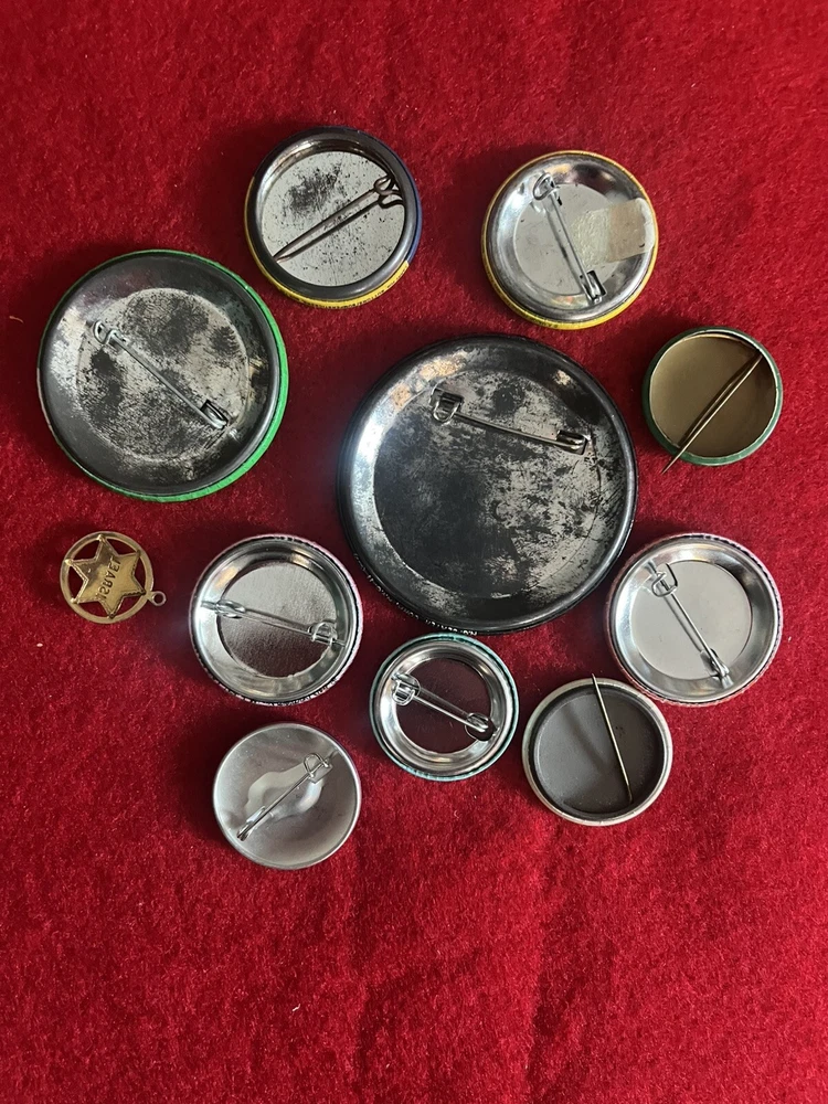 Lot of 11 Slogan Cause Pin Back Buttons. Condition is Used. Shipped with USPS Ground Advantage.