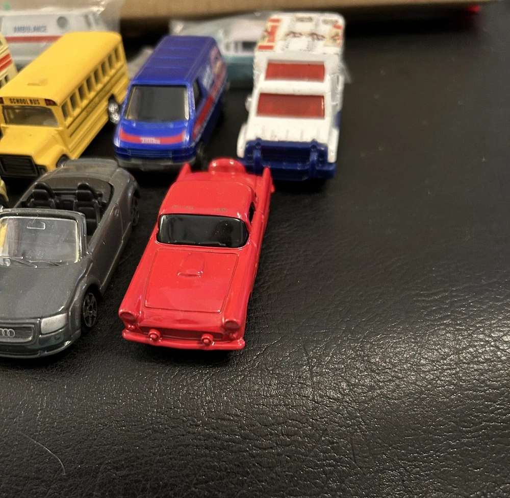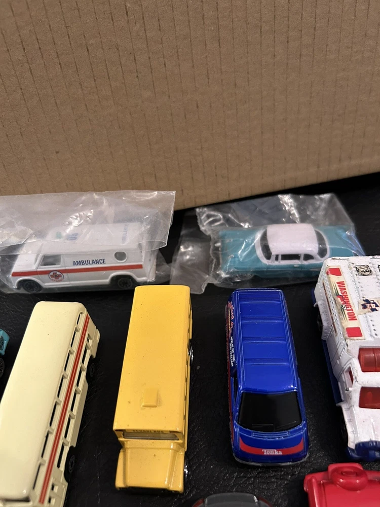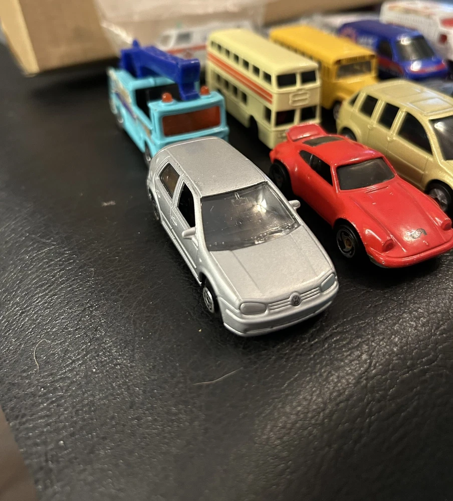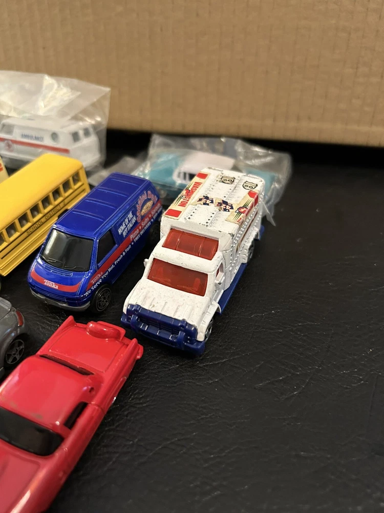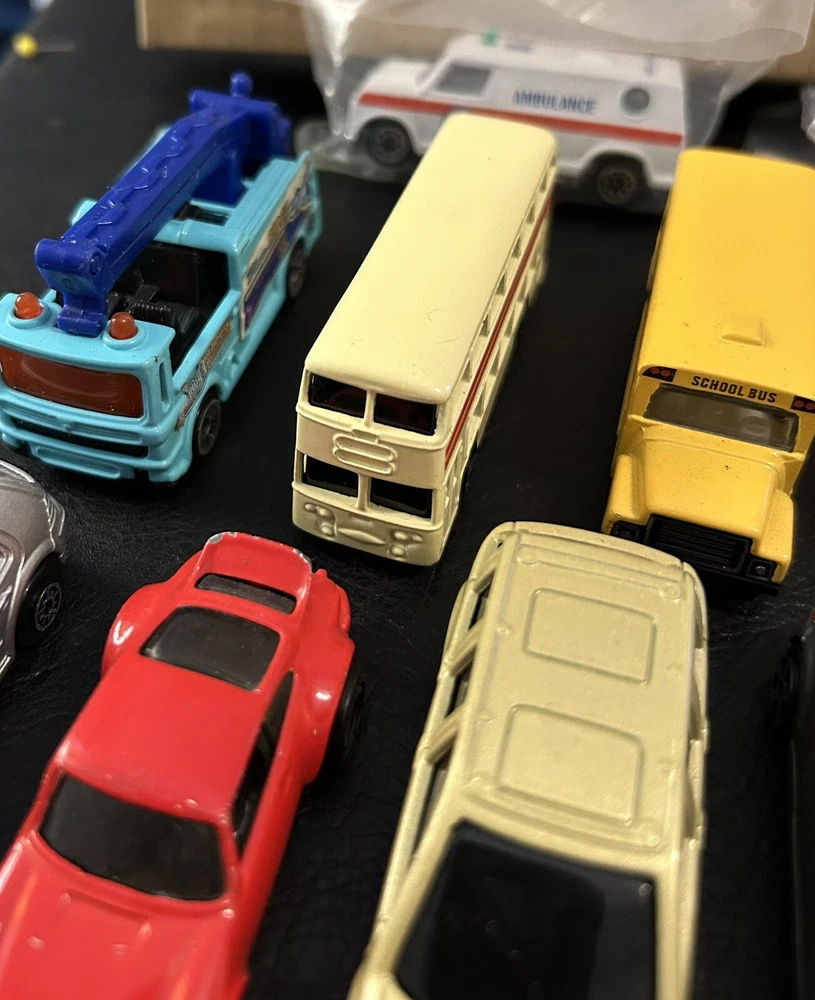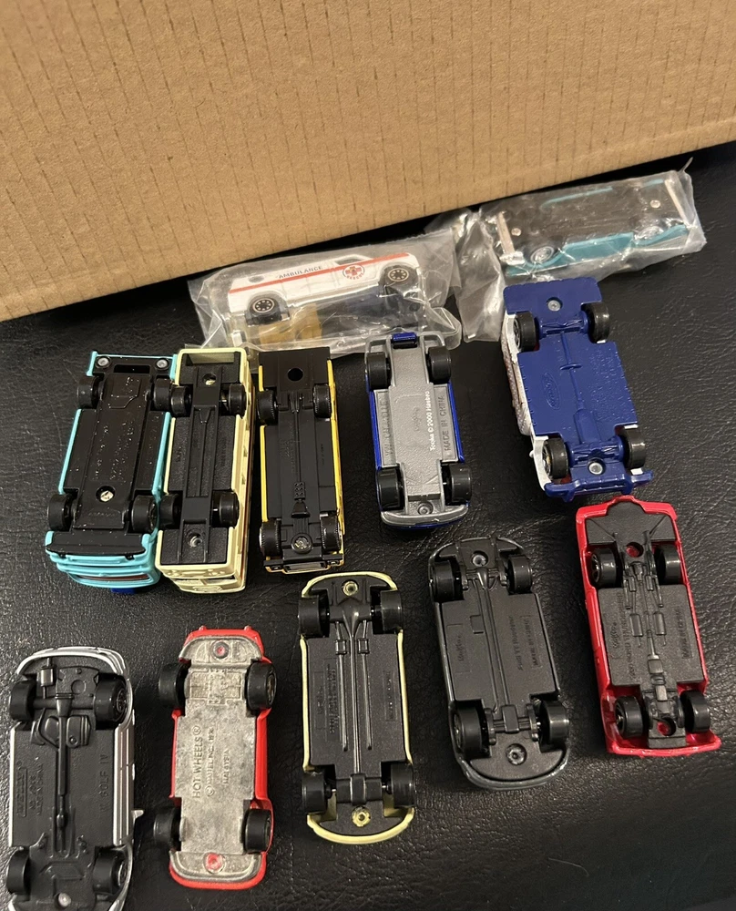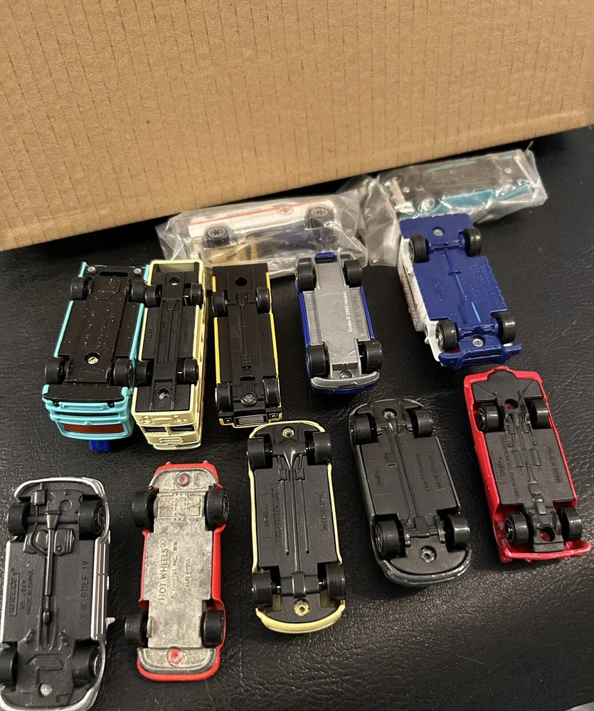Lot of 12 vintage 1:64 scale die-cast cars includes Matchbox, Hot Wheels, Maisto, and Welly brands. The cars are multi-color and part of the Cars character family. Made of diecast material, these collectible vehicles are a mix of various models from different manufacturers.