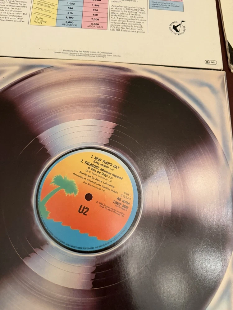 Features: Original Cover Record Grading: Very Good (VG) Material: Vinyl Language: English Country of Origin: United States Sleeve Grading: Very Good (VG) Number of Audio Channels: Stereo Artist: Love and Rockets, Howard Jones, Frankie Goes to Hollywood, U2, Billy Idol, Sting, Paul Young, The Style Council, Scritti Politti, Heaven 17, Fun Boy Three, Wang Chung, The Communards, The Buck Beats Style: New Wave Genre: Pop, Rock Type: Single Era: 80s Fidelity Level: High-Fidelity Edition: First Pressing Format: Record Color: Black Record Size: 12" Case Type: Cardboard Sleeve Inlay Condition: Very Good (VG)