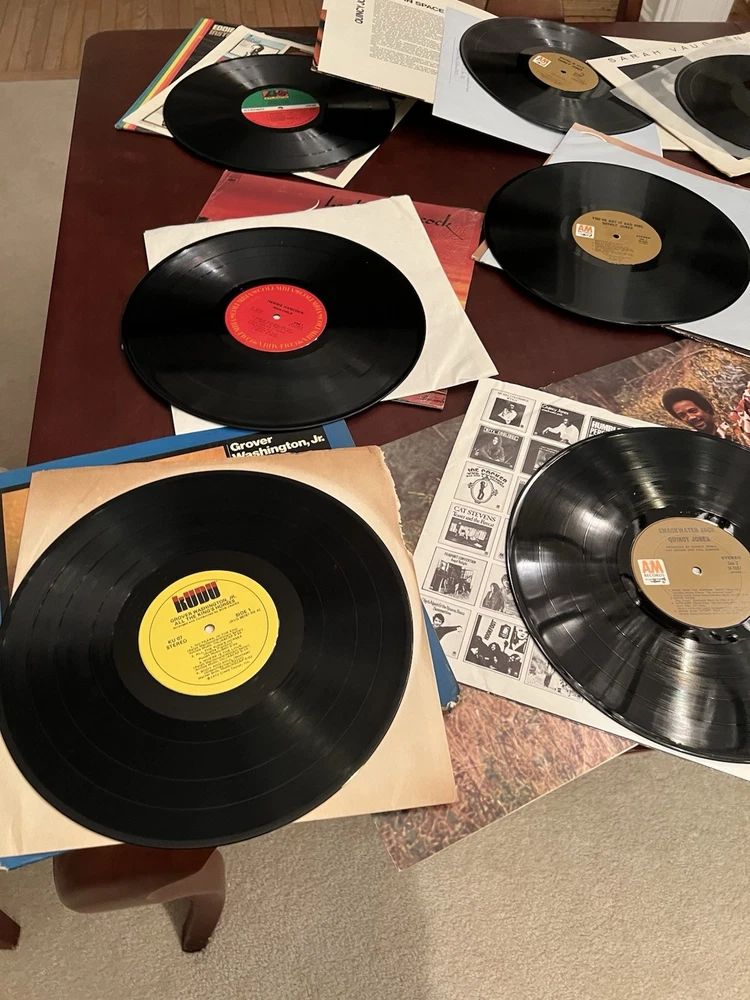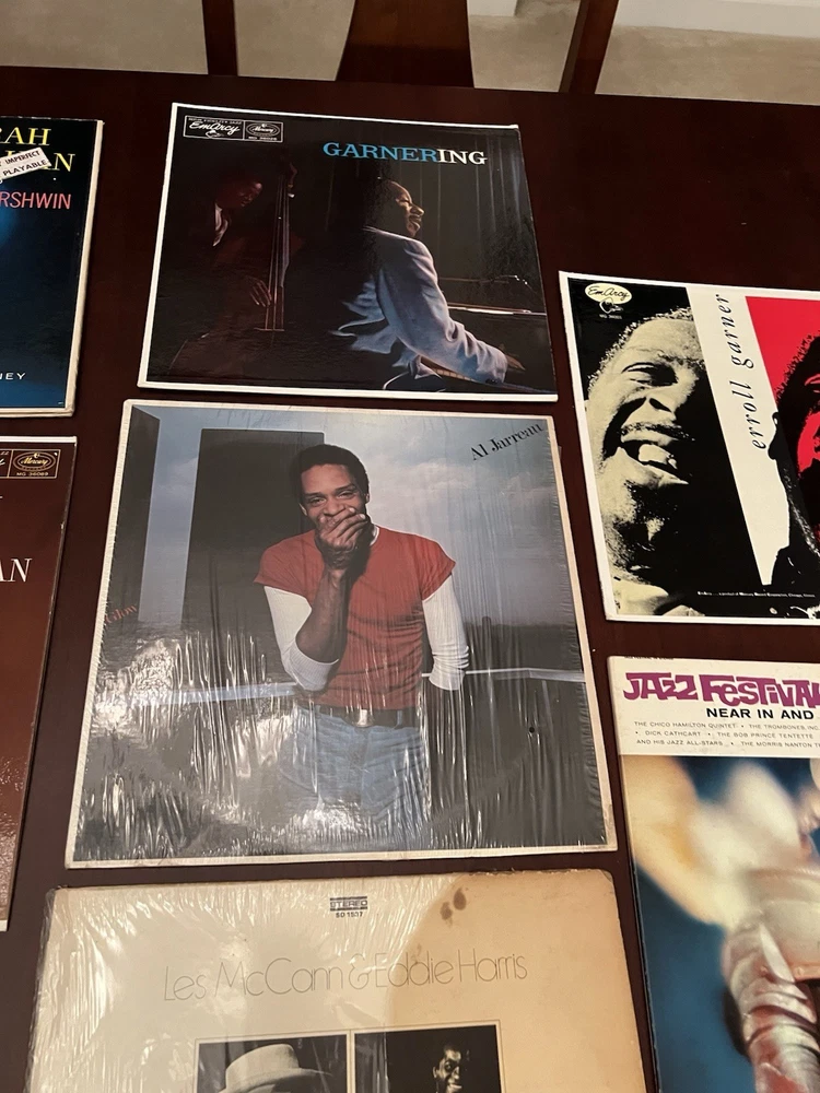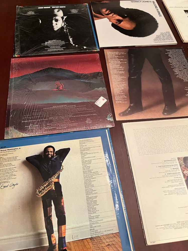 This lot of 16 vintage vinyl albums features various jazz artists such as Herbie Hancock, Eddie Harris, Al Jarreau, and Quincy Jones, among others. The records are in LP format with a 33 RPM speed and made of vinyl material. The albums come in a cardboard sleeve case type with a 12" record size. The music is in English and falls under the jazz genre, making it a valuable addition to any jazz music collection.