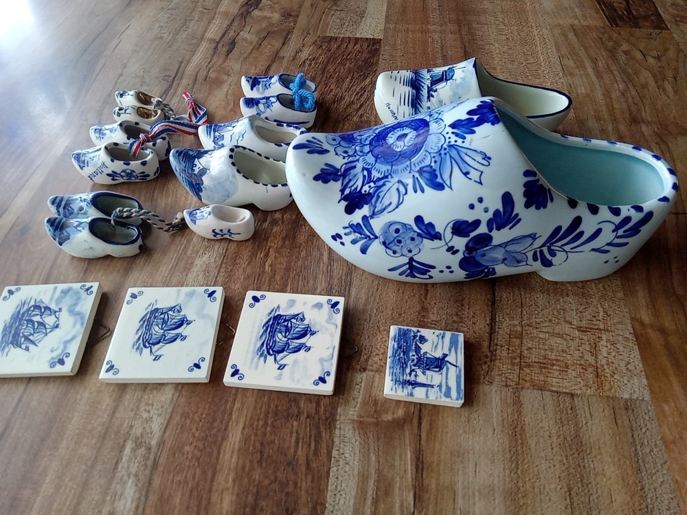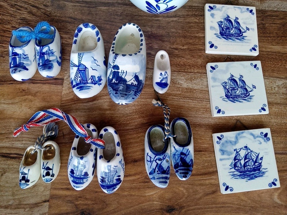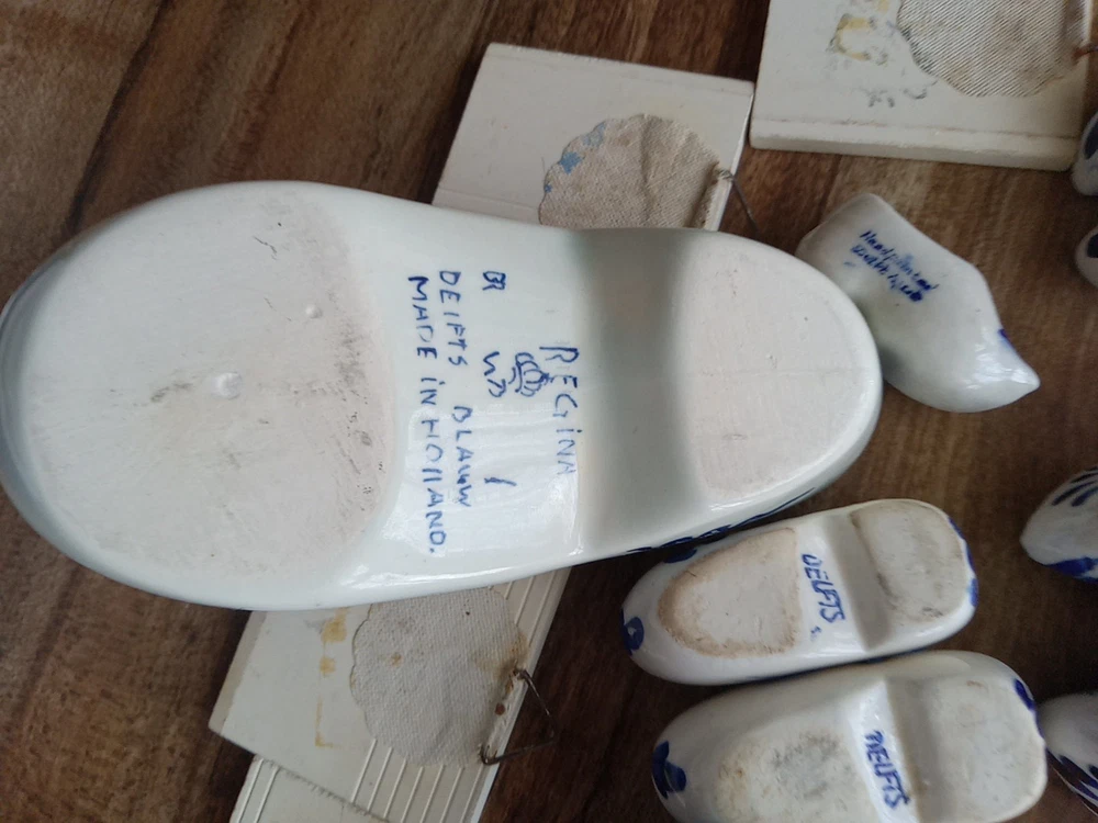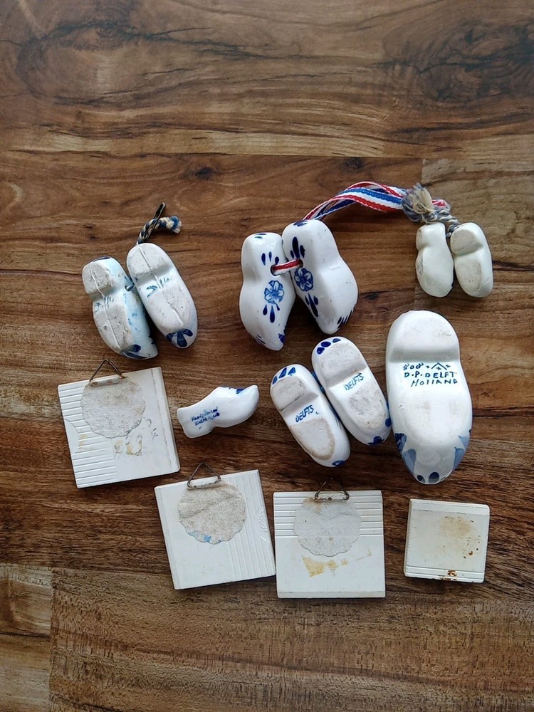 Most marked, the 3 matching tiles, one has a worn partial " delft". Refrigerator Magnet isn't marked. All good and clean.