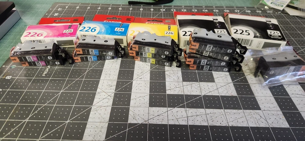The product is a lot of 17 genuine Canon OEM Pixma ink cartridges compatible with Canon printers. These cartridges are original and made by Canon. 3 x 225 black 4 x 226 black 3 x 226 magenta 3 x 226 cyan 4 x 226 yellow