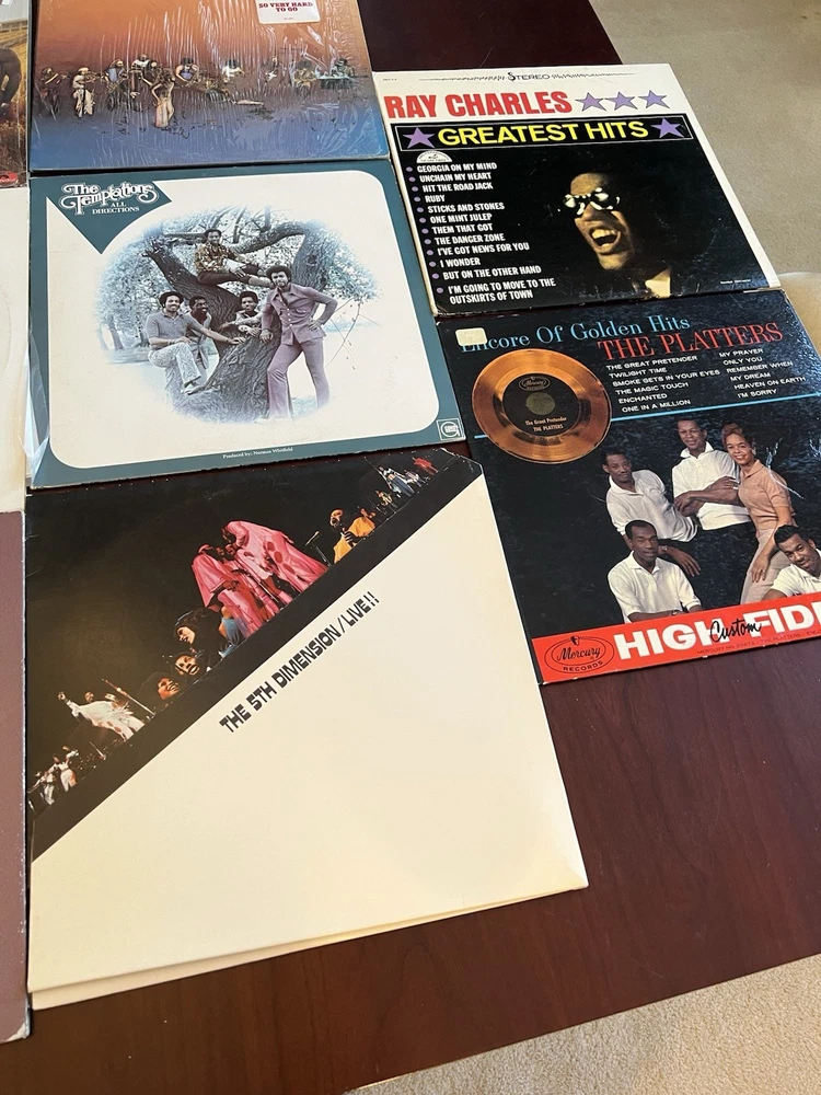 This lot of 18 vintage vinyl records features a mix of soul, funk, and jazz music from iconic artists such as Otis Redding, Ray Charles, and The Temptations. The records are in 33 RPM vinyl format with a 12" size and come in cardboard sleeves. The collection includes classic hits from the 60s and 70s, making it a valuable addition to any music lover's collection.
