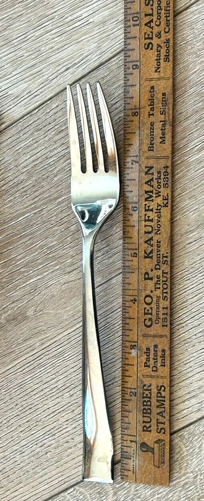 Add a touch of elegance to your dining table with this set of two gourmet settings dinner forks. Made of high-quality stainless steel, these forks feature a glossy finish and a solid handle pattern. The forks are 8.5 inches in length and have a sophisticated silver color that will complement any table setting.Perfect for everyday use or special occasions, these forks are a great addition to your flatware collection. Perfect for starting or filling in your beautiful set. I’m putting others in this pattern on eBay at this time and I’m happy to combine.