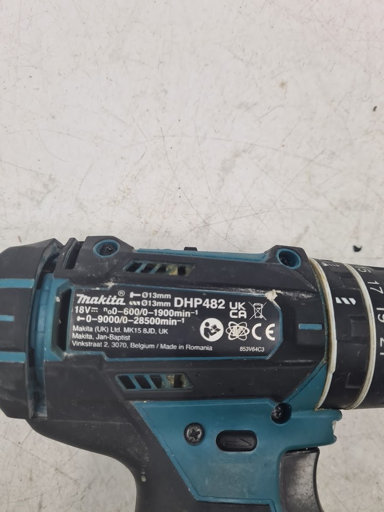 Item Length: 24 cm Country of Origin: Japan Number of Items in Set: 2 Auxiliary Handle: No Item Width: 8 cm Speed: Variable Voltage: 18 V Power: Not Applicable Chuck Type: Keyless Battery Technology: Lithium-Ion Colour: BLUE Model: DHP482 Chuck Size: 13 mm Cable Length: Not Applicable Item Weight: 1.7 kg gtin13: Does not apply Type: Cordless Drill Maximum Torque: Not Applicable UPC: Does not apply Power Source: Battery Manufacturer Warranty: None Charging Time: Not Applicable Features: Compact, Lightweight Battery Included: No Motor Type: Brushed Battery Capacity: Not Applicable MPN: n/a Number of Batteries: 0 Brand: Makita Item Diameter: Not Applicable Set Includes: Drill Item Height: 25 cm