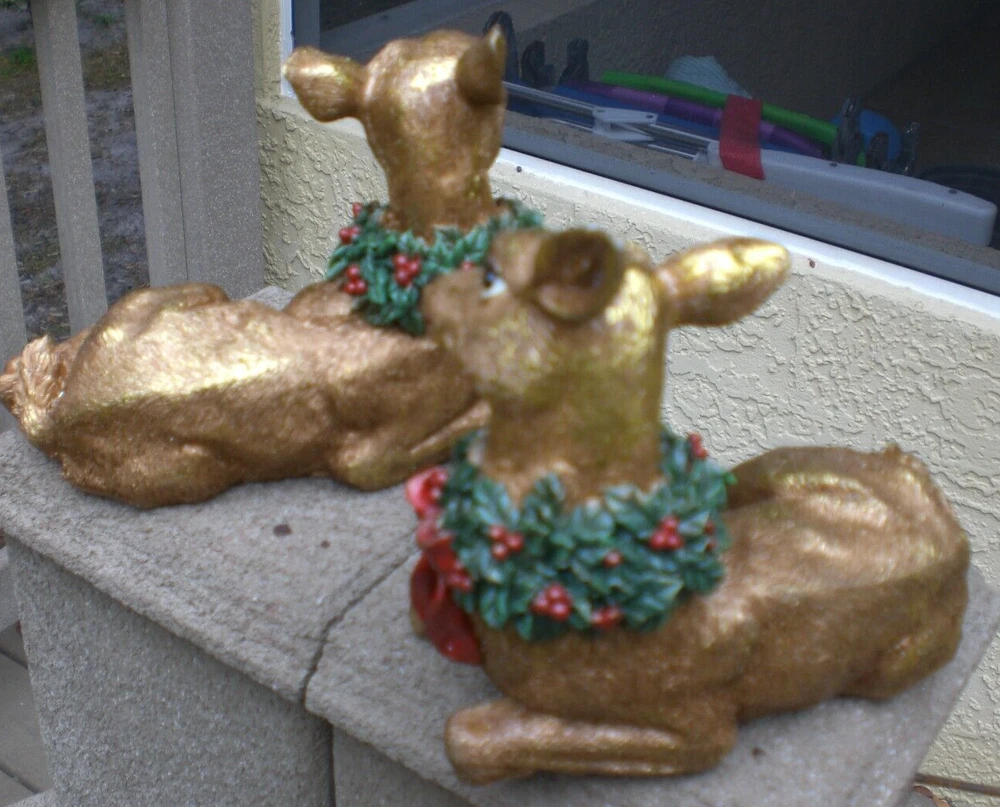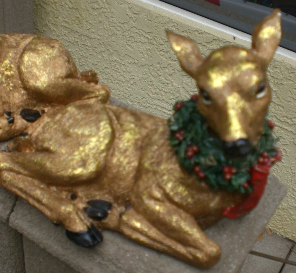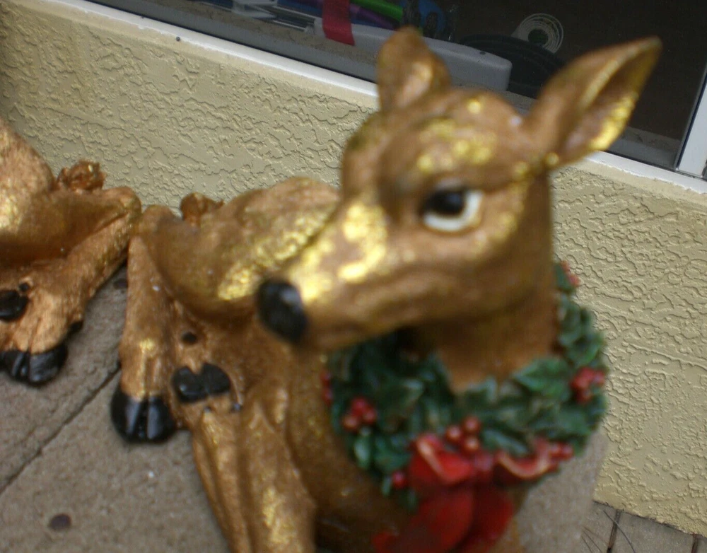 This Lot of 2 Sitting Metallic Gold DEER will have decorated Wreaths around their necks and will be in NEW condition without Box. They will have a beautiful metallic gold texture.