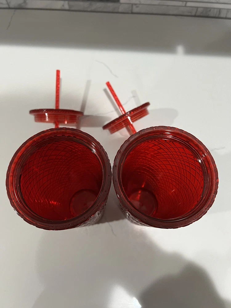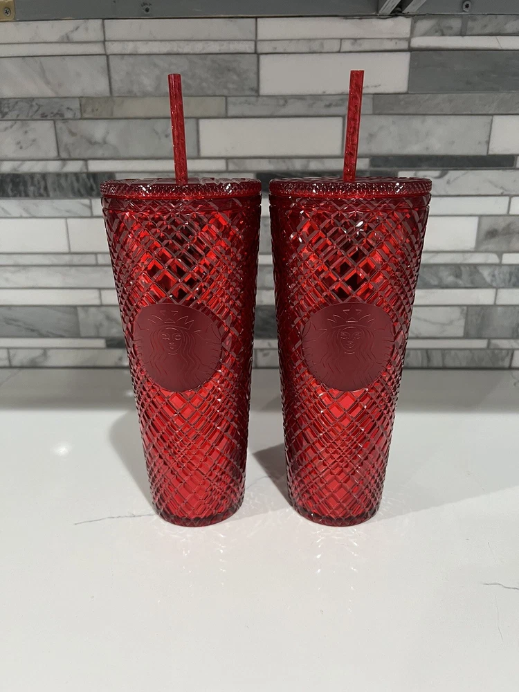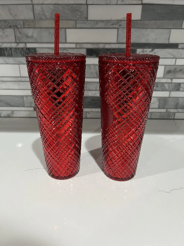 Lot of 2 Starbucks Red Jeweled Venti 24 oz Tumbler Cold Cup 2021 Winter Holiday