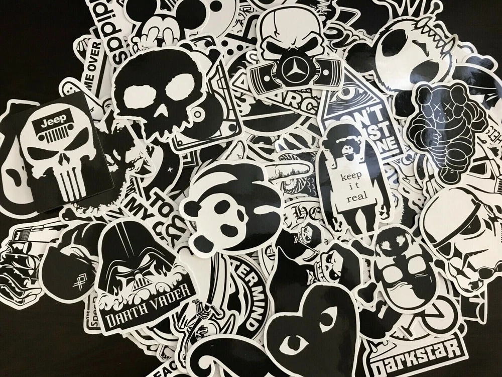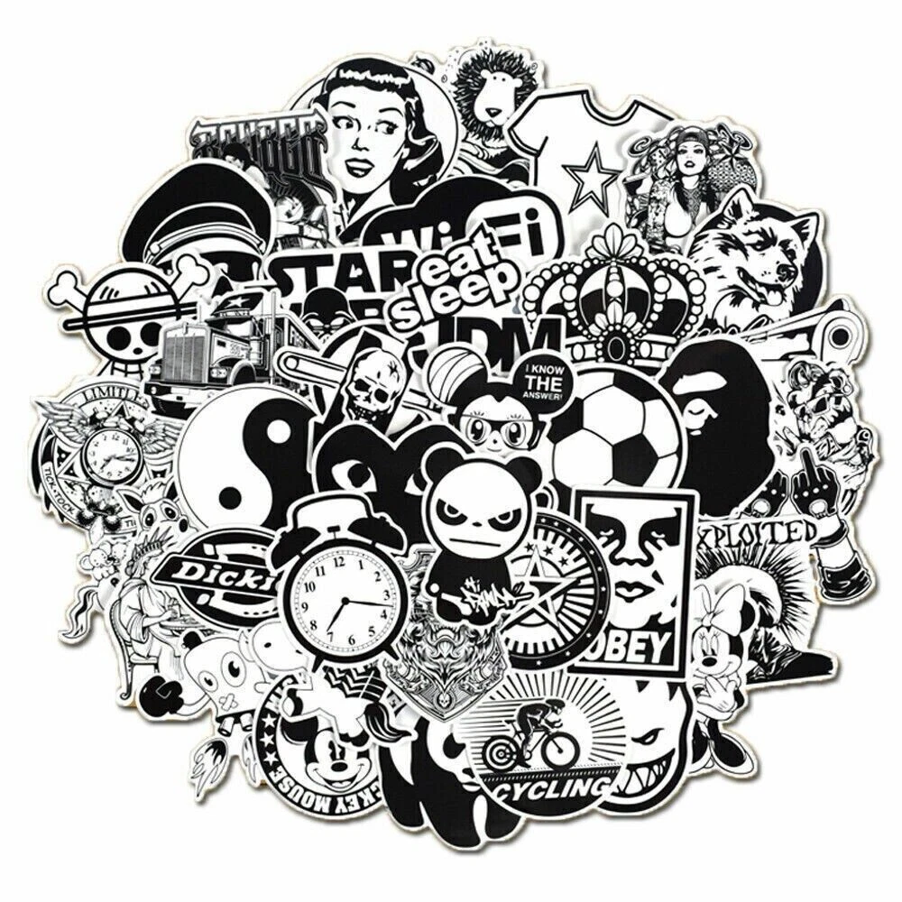 Pack included: 200 Black & White stickers ( Two identical packs) , Total 200 stickers , up to 100 stickers no duplicates FEATURE: Size: 6-12cm Material: PVC Style: Sun protection and Waterproof Perfect for sticker bombing laptops, luggage, walls, skate/snowboard, refrigerator, car, motorcycle, bike, helmet, etc Stickers send out randomly How to use: Clean the surface then stick on Use your imagination to create works Random shippments,without repetition basically Handling We will ship all orders within 1 business day of payment. Delivery Domestic arrival time: 3-5 Business days We do ship outside of the Continental US, buyers will be responsible for the all shipping cost Return Policy All items qualify for returns within 30 days of receipt. Buyer is responsible for return shipping on any item that is not damaged. Feedback We take our reputation seriously, we buy and sell online, so we understand the value of trust. If you are unsatisfied with your order, please contact us and we will work with you to resolve it to your satisfaction.