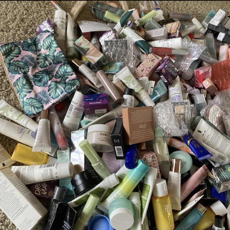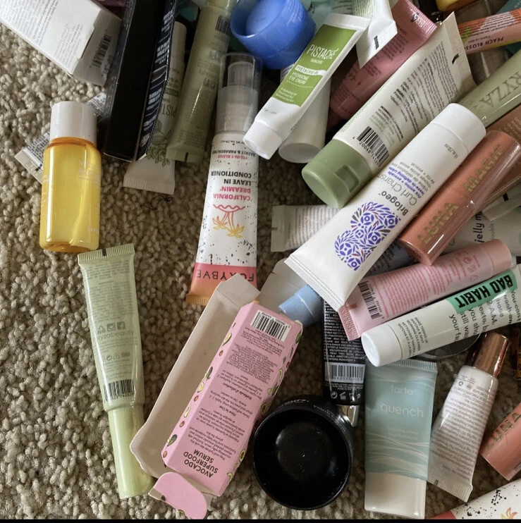 Lot of 25 Deluxe/Travel & Sample size Beauty Products Hair/Skin/Makeup NEW W/Bag.