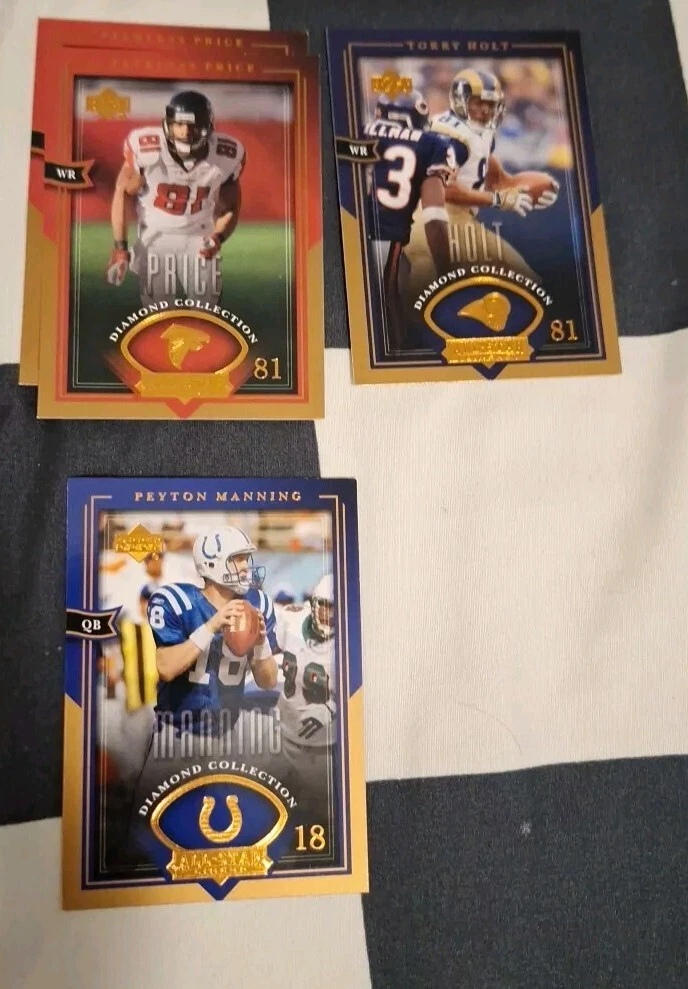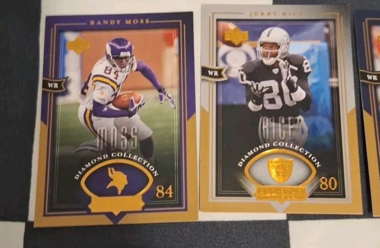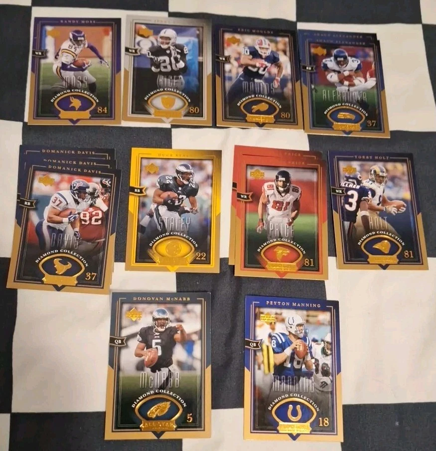 Player/Athlete: Randy Moss, Jerry Rice, Eric Moulds, SHeun Alexander, Dominic Davis, Deuce Stanley, Peerless Price, Terry Holt, Donovan McNabb, Peyton Manning Type: Sports Trading Card Set: 2004 Upper Deck Season: 2004 Manufacturer: Upper Deck Features: Base Set Country/Region of Manufacture: United States Vintage: No Material: Paper, Paperboard Original/Licensed Reprint: Original League: National Football League (NFL) Number of Cards: 27 Card Size: Standard Team: Minnesota Vikings, Oakland Raiders, Buffalo Bills, Seattle Seahawks, Houston Texans, Philadelphia Eagles, Atlanta Falcons, St. Louis Rams, Indianapolis Colts Sport: Football Language: English Year Manufactured: 2004