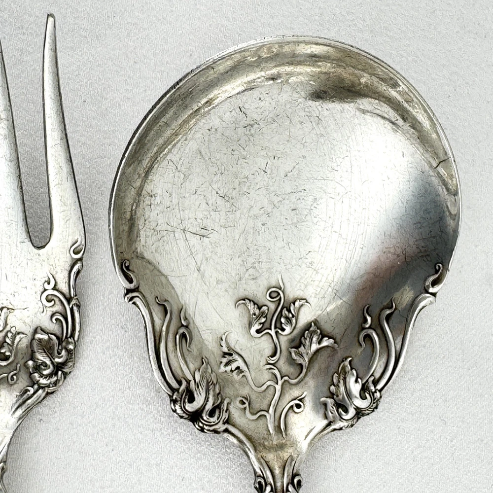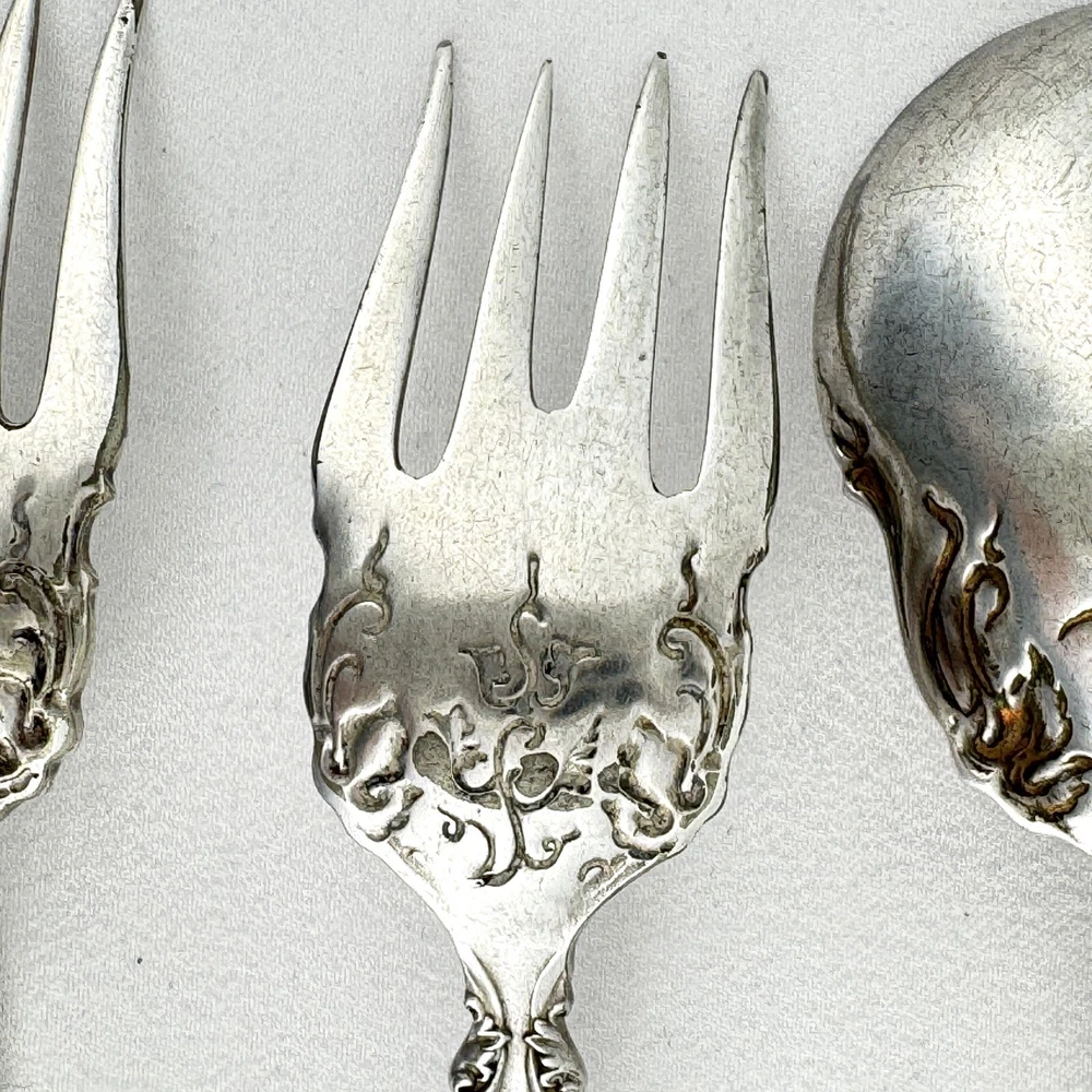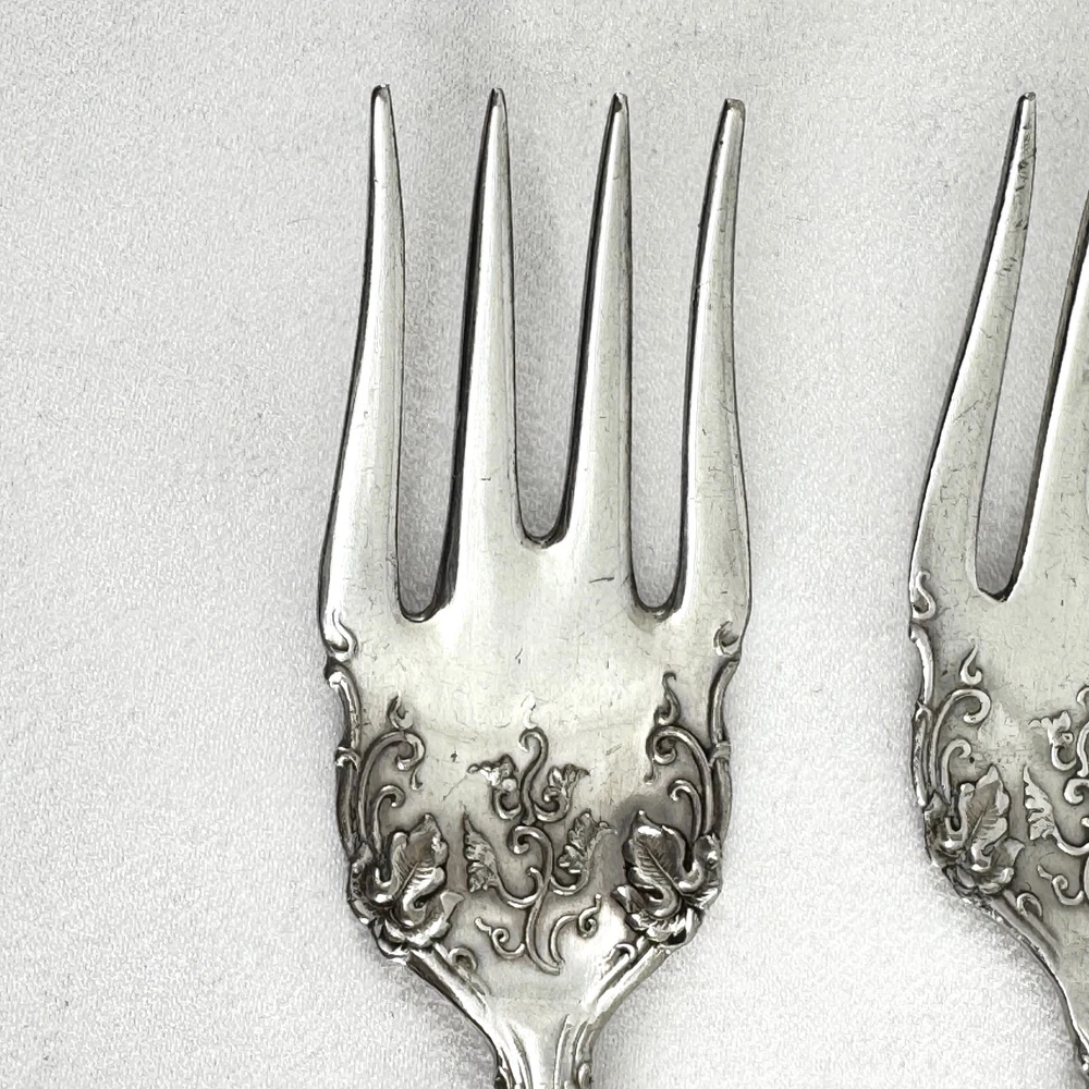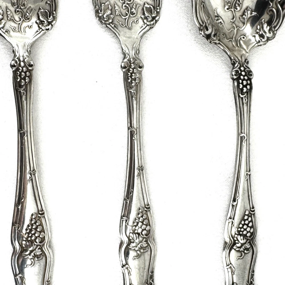 Offering a lot of 3 Vintage by 1847 Rogers Bros. impressed backstamp Triple XS. One sugar spoon 5 7/8” and two salad forks 5 7/8” silver plated in their Grapes design. Good condition, no bends, dents, or disposal damage. One fork has one tine that is shorter than the rest. There are scratches consistent with normal wear. Please view the photos for details and condition. Measurements and photo colors are approximate. For extra protection they will be packed in plastic sleeves and shipped in a box. Shipping is your choice of USPS Ground Advantage or USPS Priority at the rate determined by eBay. Terms of Sale: Photos are of the actual item you will receive and sold "as is". Placing an order is your agreement that you know what you are buying, have viewed the photos and find the condition acceptable. If you have any questions or concerns about your order, contact me through eBay Messages. Please inspect your item upon arrival and contact me if there are any problems so we may work out a solution, before you leave feedback or request a refund. No returns please.