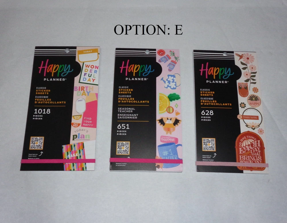 Lot of 3 Sticker Books Brand: Happy Planner Theme: Garden Florals, Wonderful Day, Inspirations, Birthdays, Notes, Reminders, etc. Quantity: A lot of Three (3) Sticker Books Choose from Options A, B, C, D, and/or E SHIPPING : E-commerce selling policies require the seller to ship ONLY to the designated address associated with the buying account (no exception) to protect both the buyer and seller and minimized confusion and possible fraud. Therefore, it is important to update your shipping address PRIOR to purchase/payment, so that the item will arrive safely at the correct address. Shipping service is available only when shipping is offered and/or quoted as part of the shipping service. When the shipping service is not offered, then the buyer is responsible for the local pickup or arranging his/her own shipping. By purchasing the item, the seller has agreed to cooperate with the shipping service to complete the claim should any damage occur. The buyer must send to the seller photos of the damage(s) of both the item and the shipping box within 24 hours of delivery. AFFILIATION: We are not affiliated with the brand names being listed, as such brands mentioned are for identification purposes only. CONDITION : True color/shade may vary due to lighting, camera flash, and adjustments to your screen. The item(s) in the photos are the actual item(s) for sale as pictured, so please refer to the photos for specifications, details, and conditions. When purchasing a used item, please be aware that there will be expected signs of use, such as but not limited to scratches, wears, tears, dents, fades, cracks, oxidization, discoloration, etc. Since condition description is subjective and varies by an individual's interpretation and level of one’s expectation, we rely on the objectivity of photos to provide visual details, description, and condition of the item as every pre-owned item is uniquely different. The photos are an integral part of the listing, and supplemental written information is provided in the description where available. Pre-owned items are sold as-is with shown flaws. All measurements are approximate and/or rounded for reference only. TERMS OF SALE: The buyer hereby agrees and is bound to the following terms upon purchase. Only the item(s) shown in the photo(s) are included (not including background and/or props unless specified). If the item is damaged during shipping to the buyer, the buyer must cooperate with the seller and shipping service to help facilitate the claim. The buyer must submit photos of the damaged item(s) including the shipping box to the seller. For high-value items, the item may need to be kept for inspection by the shipping service. Item(s) returned for other reasons must be returned to the same condition (unused, unaltered) in which they were received, and must include all items intact that were in the original package including and not limited to cords, cables, remote controls, manuals, warranty/rebate cards, free gifts or bonus items. The buyer is liable for loss in value of the item(s) if it is returned in a different condition, with missing pieces, or if the item(s) were not packaged securely to prevent damage during return shipment. Regardless of the origin of the item, the documentation provided, or identification appearing upon the item, the item described and offered here is in no way certified for, recommended for, or provided for any specific use. The purchaser agrees that the seller shall not be held responsible or liable for any injuries or damages, whether incidental or consequential, associated in any way with the item purchased. The purchaser, by bidding/buying on this item, indicates their acknowledgment of, and agreement to, the terms of the above disclaimer.