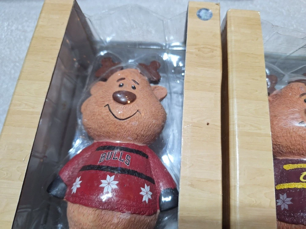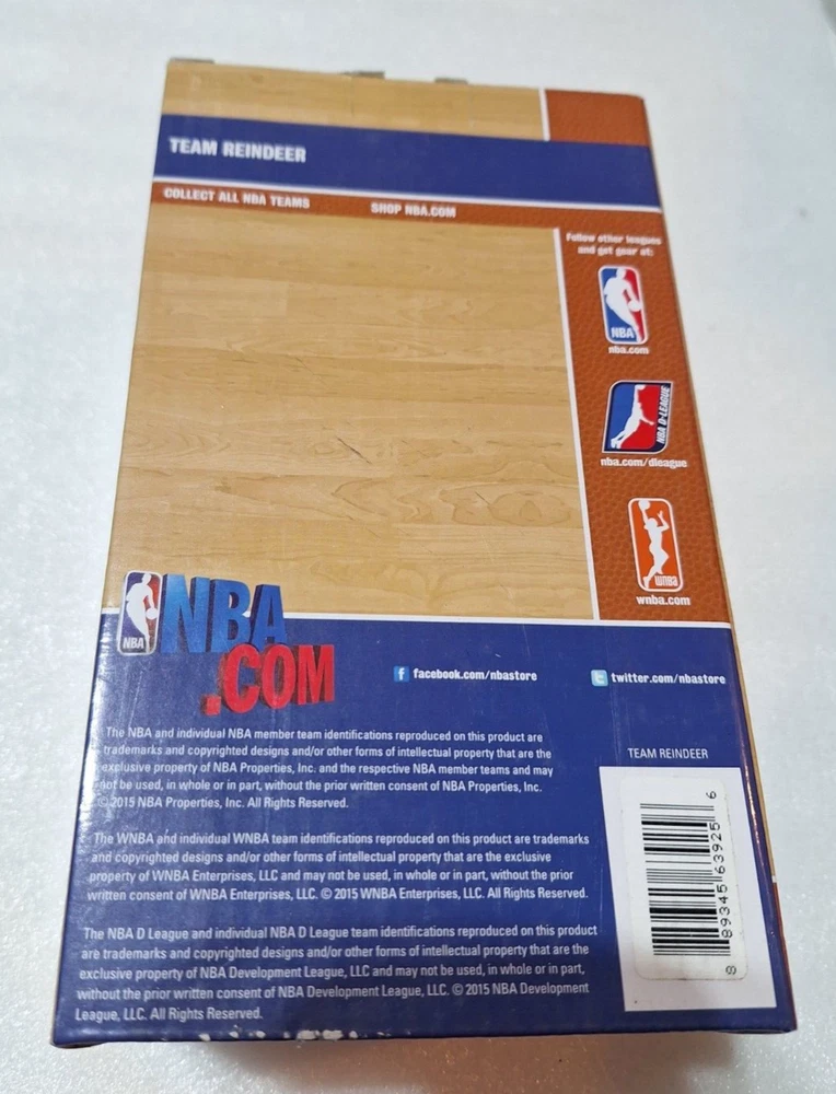 Lot of 3 NBA Reindeer 7" Figures in their original boxes from 2015. Included teams are the Cleveland Cavaliers, Chicago Bulls and Green Bay Packers. The boxes show some wear. I hopefully caught every flaw possible with my pictures. Please use zoom to find any small flaws I may have missed. If there's something important to you that I should describe let me know, I'm happy to answer any question you may have. *********************************************************** We are a non-smoking home. I do combine shipping FOR USA SHIPPING ONLY so please check out my other items. If you wish to combine shipping you must wait to pay so that I may invoice you with the reduced shipping price . Combined shipping is not available to Ebay Global buyers.
