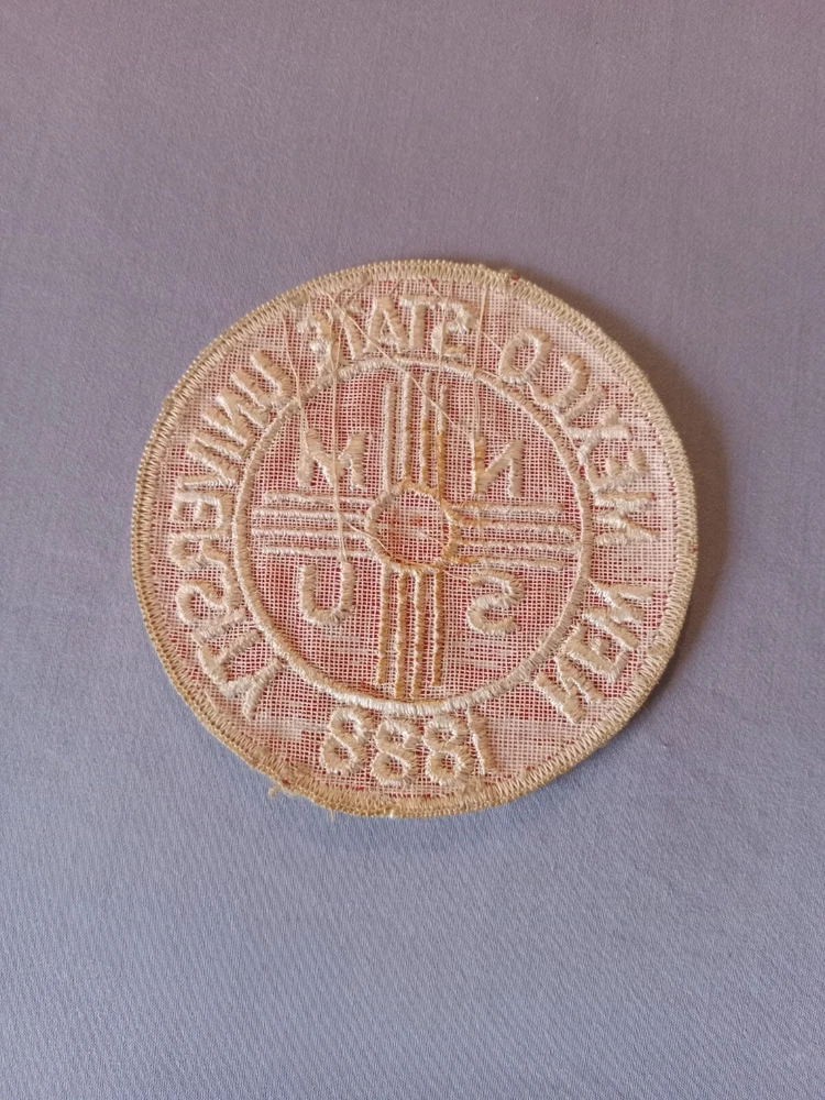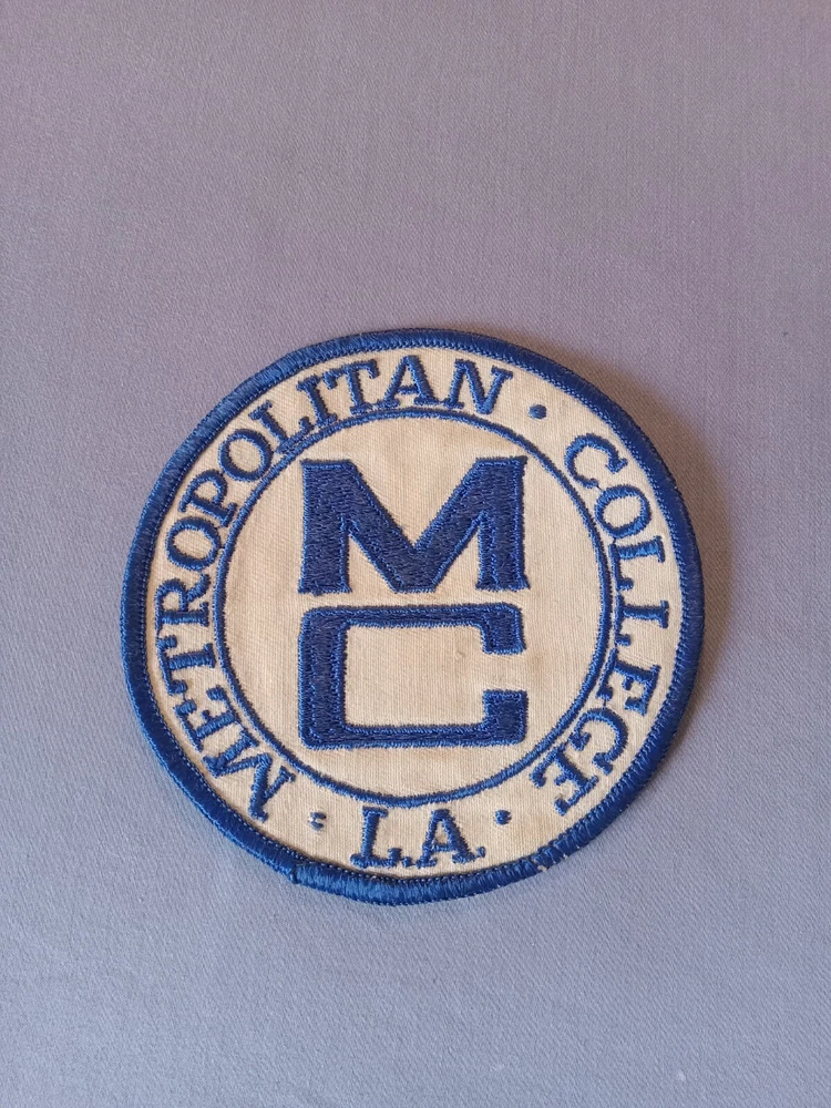 Preowned, stitch-on patches. 3 Patches~ 2 Metropolitan College L.A. ~ round (W-4") and letterman basketball (H-6", W-4 3/4"). And 1 New Mexico University 1888 (W-3 1/2").