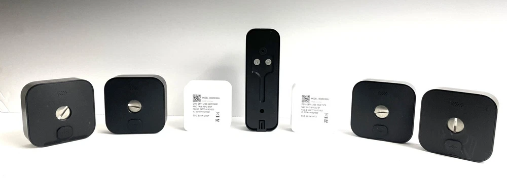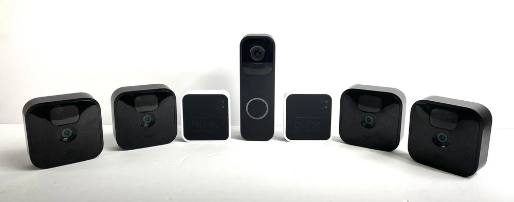 Lot of 4 Blink BCM00400U Black Security Cameras, 1 Doorbell Camera & 2 Sync Modules Cosmetic Condition: The camera lenses are good. There are minimal scratches on the surface cases. We are a reseller of this product, and not the product's manufacturer. This product is not covered by manufacturer warranty and therefore does not get manufacturer service assistance. This product covered by seller 30 day warranty Tested - Fully functional Included: -Lot of 4 used Blink Cameras (1 mounting bracket) -1 New and unused Blink Doorbell Camera with original mounting hardware -2 used Blink Sync Modules No original boxes, manuals or any other accessories included. FAST AND FREE SHIPPING