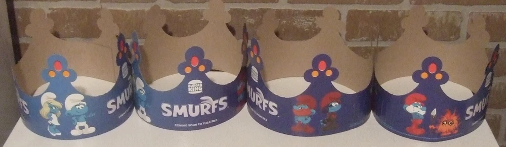 Four Burger King crowns. Special edition to promote the 2025 movie “Smurfs”. All in excellent condition.