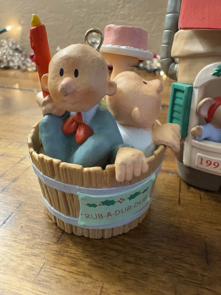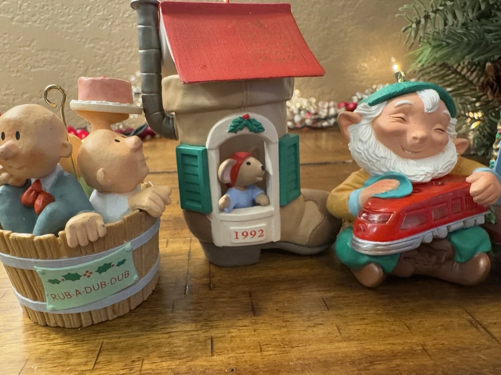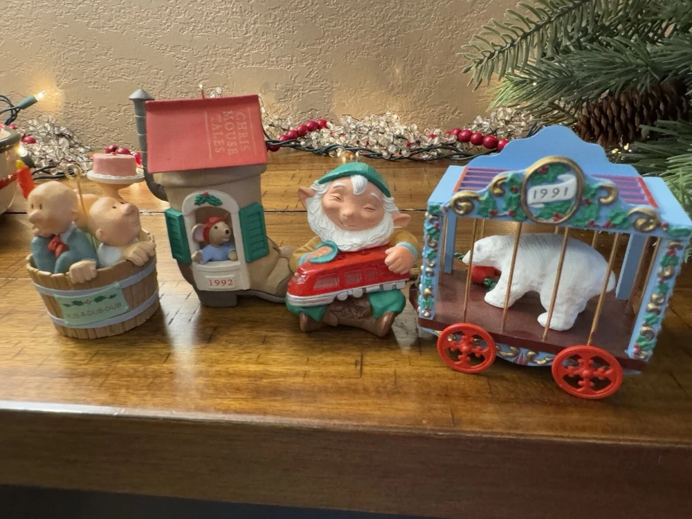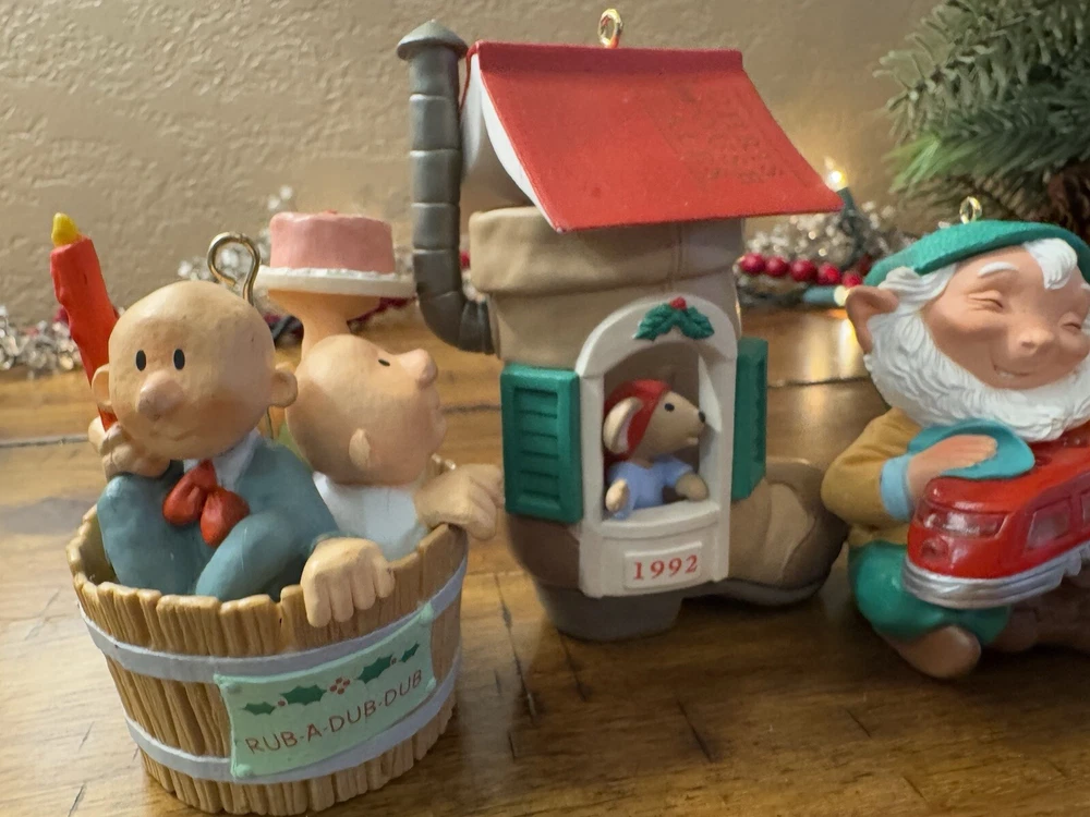 Lot of 4 Hallmark Christmas Ornaments 3 Men in A Tub Chris Mouse Polar Bear Elf