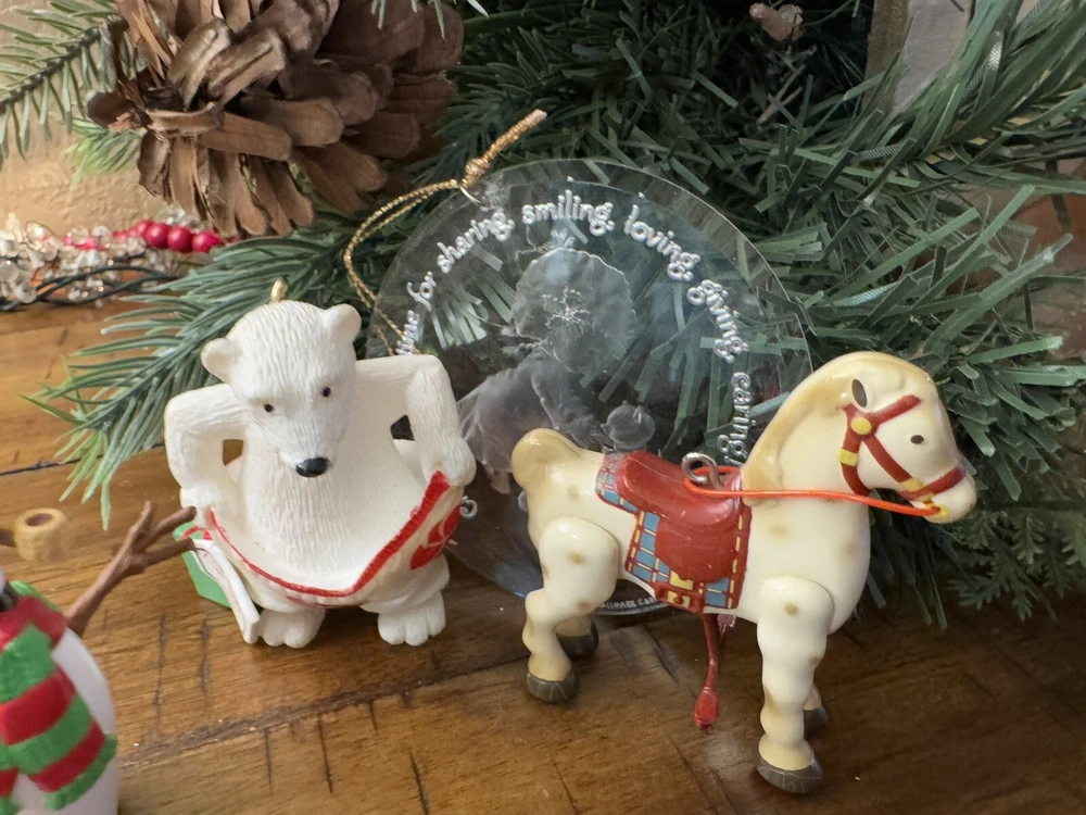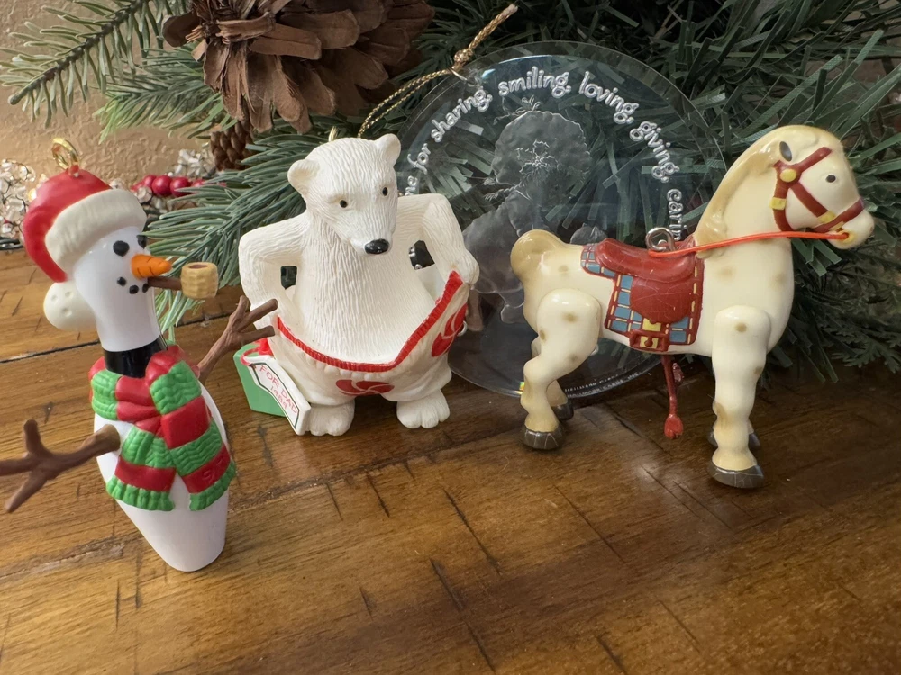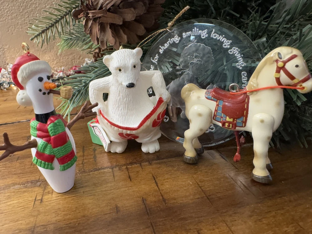 Lot of 4 Hallmark Christmas Ornaments Polar Bear Metal Hobby Horse Bowling Pin +