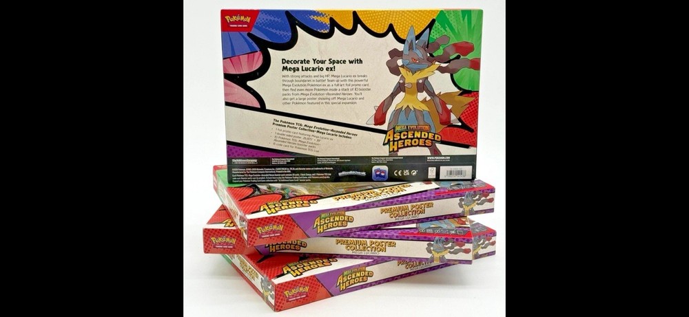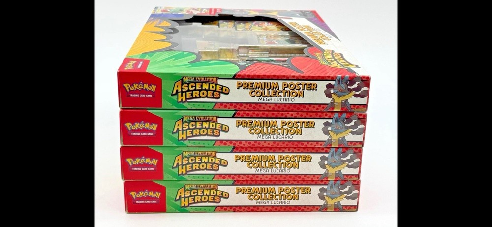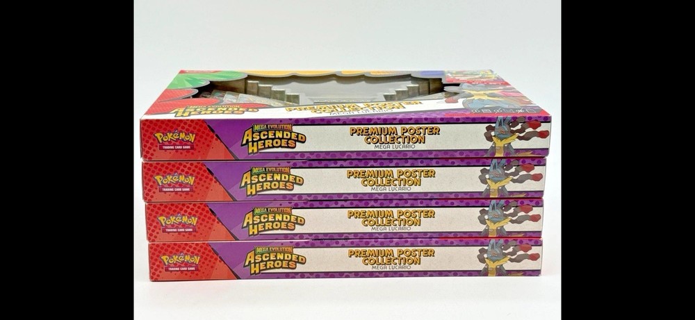 Lot of (4) Pokemon Ascended Heroes Premium Poster Collection Mega Lucario Boxes Sealed! Will ship mid April! Look at some other listings if you like this one!
