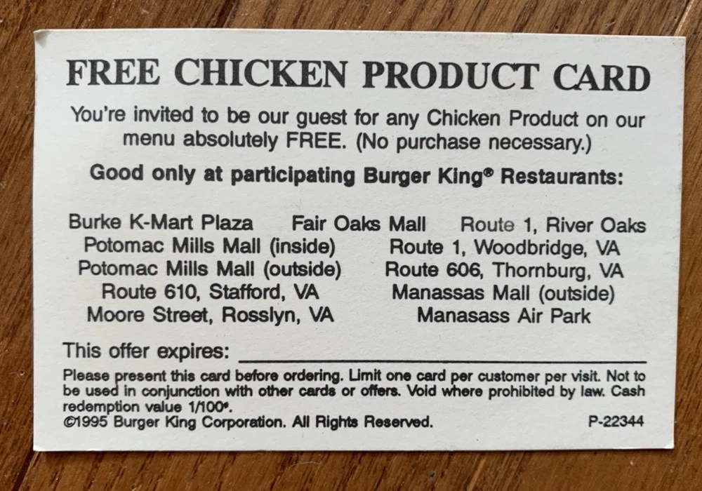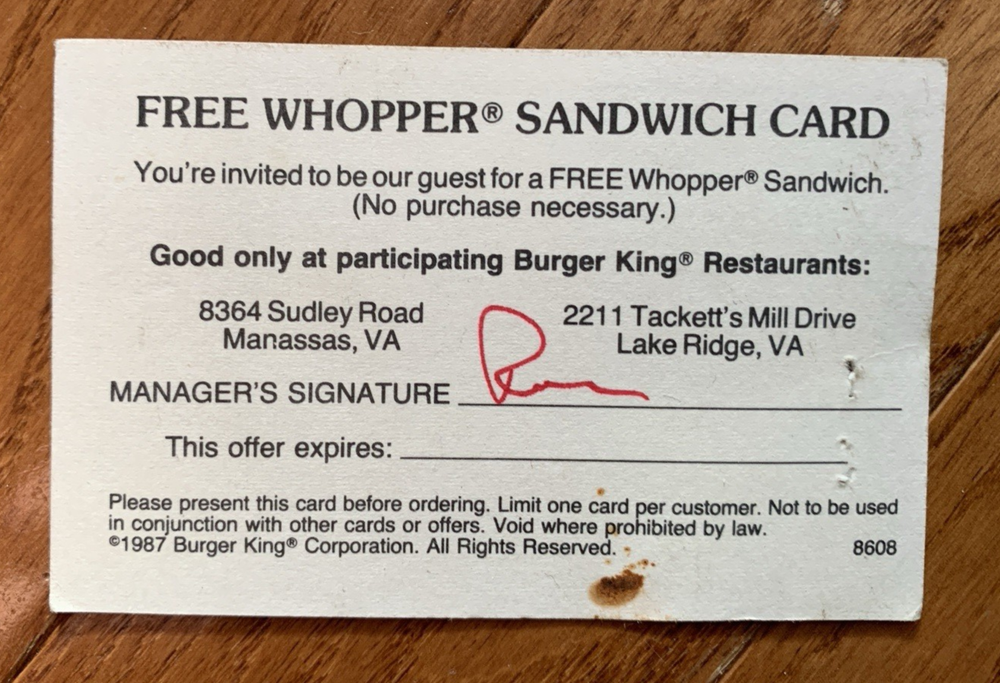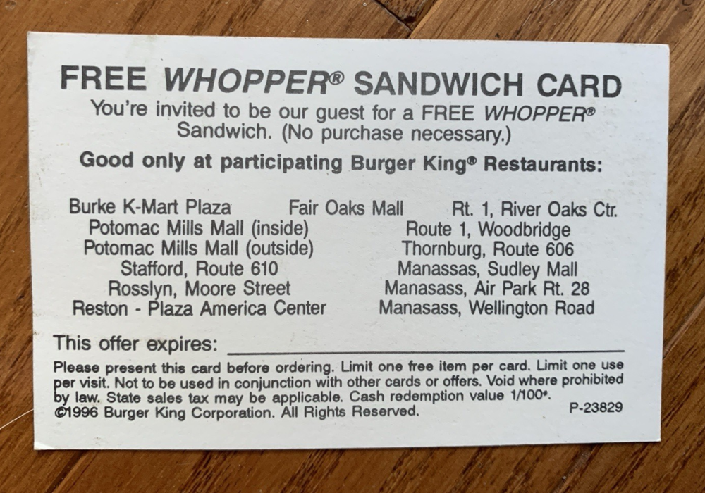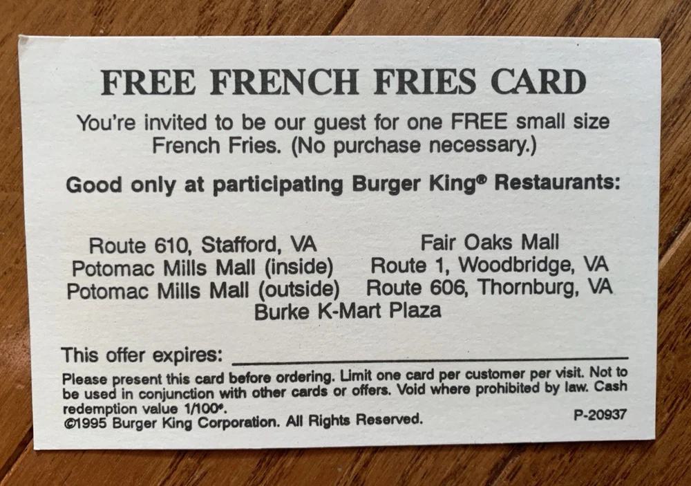Lot of 5 Burger King Coupon Cards Expired Advertising