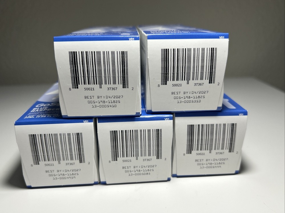 Lot of 5 Cirkul GoSip Blue Raspberry Cartridges 20 ml/0.68 fl oz No Sugar No Artificial Flavors No artificial colors Zero calories 84% reduction in plastic Expiration Date: 04/2027 New sealed Sold as pictured