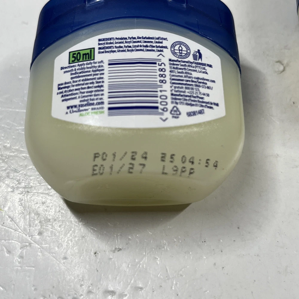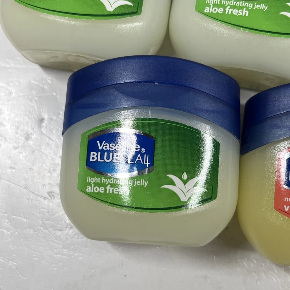 Lot of 5 VASELINE BLUE SEAL ALOE FRESH, (1) w/ Vitamin E - 1.7 FL.OZ (50 ml) ea You will receive all 5 jars pictured. 1 is a vitamin E kind. Thank you for viewing! We appreciate your business from the bottom of our hearts. We pack and ship all items same or next business day. We ship with USPS Ground Advantage. Always free shipping for all items across our entire store. All of our listings and descriptions are made in the best faith possible to accuracy and honesty of what we are offering. We inspect EVERY SINGLE ITEM to the best of our knowledge and ability before making it available for sale. Why shop with us? We are in the business of your satisfaction here at New Era Deals. You do not need to look any further when it comes to friendly, helpful customer service. Do not hesitate to ask us any questions. If by chance any issue arises with an item, we guarantee we will help find a solution. 30 day returns are accepted for all items available in our store. At the end of the day, we put our customers happiness above all. Please note that while we do offer returns on every item in our store, we have a 0 tolerance policy for fraudulent and unfaithful returns. If you are found to be stealing or abusing our return policy (i.e. returning an empty box or different item from what was purchased) we will 100% reach out to eBay and the local authorities. PLEASE use returns in an honest manner. Our story: We are a small group of eBay sellers with over 20 total years of experience selling on eBay. We collaborated in January 2024 to create project New Era Deals! Selling here on eBay is our pride and passion and lets us express our entrepreneur goals. We are very pleased to bring to our valued customers quality products across endless categories. We appreciate every single one of our past, present, and future customers very deeply!