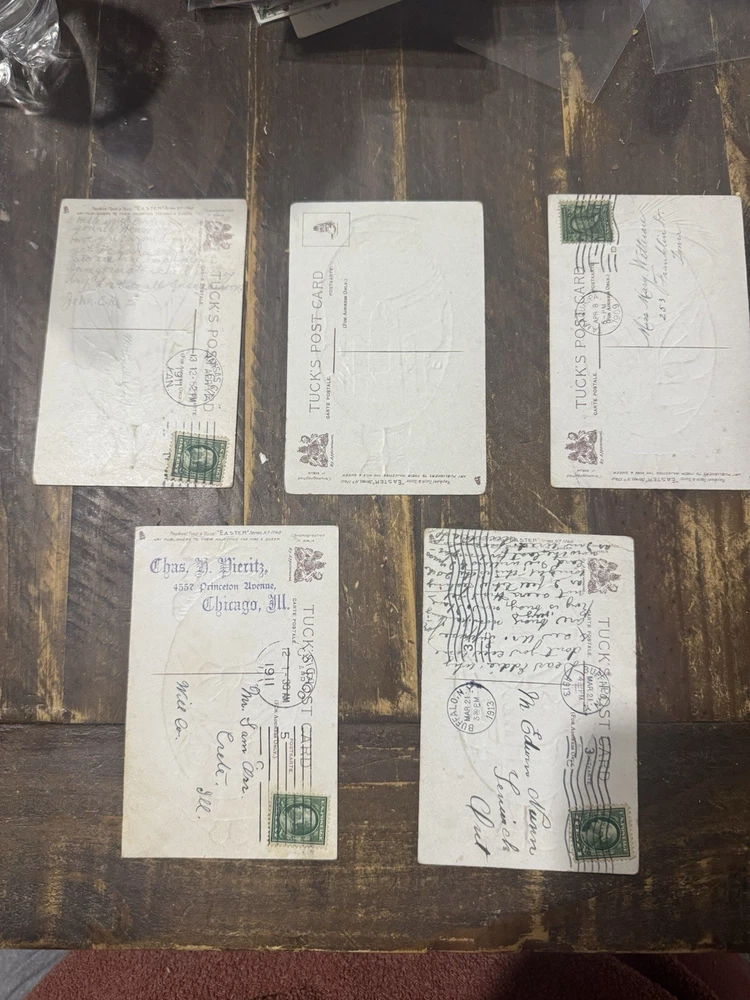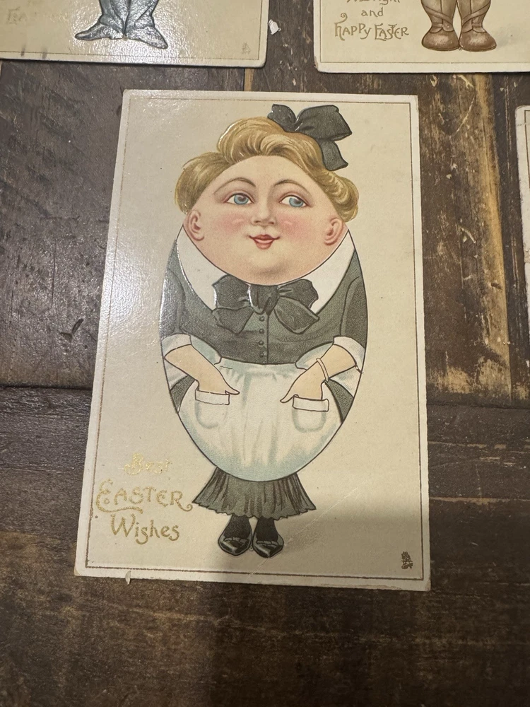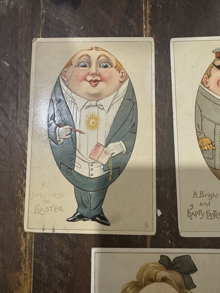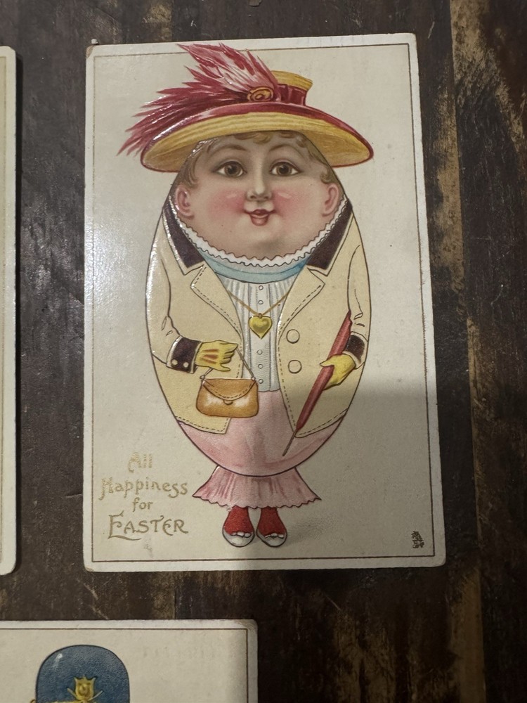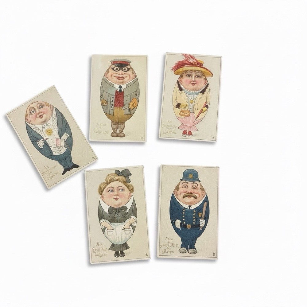 Lot of 5 original vintage Easter lithograph postcards featuring Humpty Dumpty style egg people characters. Standard size 5.5 x 3.5 in on paper. Embossed raised detailing with printed Easter greetings. Sold as one lot of five postcards. Pre-owned condition. Keywords: vintage Easter postcards, Humpty Dumpty, egg people characters, embossed postcards, lithograph postcard, holiday postcard lot, novelty humor postcards, antique Easter ephemera, collectible postcards, Easter greetings, paper postcards, postcard set of 5, seasonal decor, Victorian style postcard, retro holiday cards Details: • Occasion: Easter • Subject: Humpty Dumpty Egg People Characters • Theme: Easter, Holiday, Humor, Novelty • Unit of sale: Postcard Lot • Type: Printed (Lithograph) • Original/licensed reprint: Original • Features: Embossed, Vintage, Lot • Number of items in set: 5 • Material: Paper • Character: Humpty Dumpty • Size: Standard (5.5 x 3.5 in) • Unit quantity: 5 • Unit type: Unit - [ ] Unique & Vintage Items You’ll Love ✨ - [ ] Welcome! I’m so glad you’re here 💛 - [ ] My shop is full of great finds—from vintage and antique treasures to modern styles. - [ ] I add new items eve
