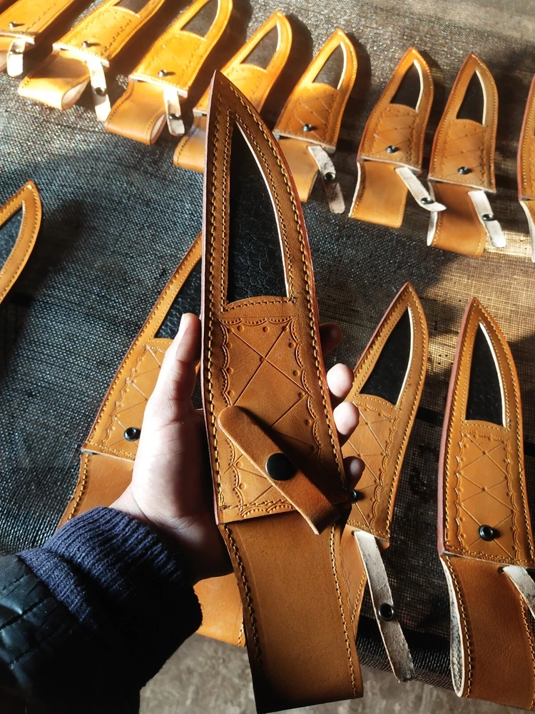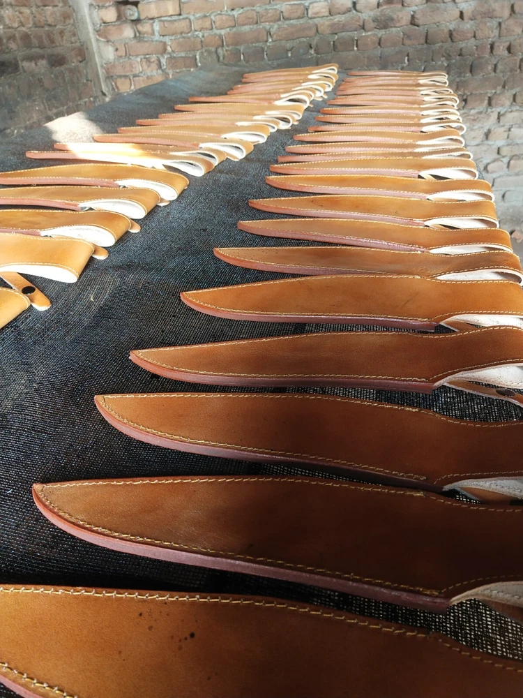 Lot of 100 Bowie leather sheaths." This could mean you're interested in purchasing or selling a bulk quantity of leather sheaths designed for Bowie knives. If you're looking for suppliers or manufacturers, there are several options to consider: Overall 15"inch Belt length: 5"inch Width 2.5"inch 1. Wholesale Suppliers: You can check platforms like eBay, or specialized knife accessory retailers that sell bulk leather sheaths. 2. Custom Leather Shops: Some shops may offer bulk orders for custom sheaths. They might be able to make 100 sheaths based on specific requirements for the Bowie knife design. 3. Online Marketplaces: Website like ebay might offer bulk purchasing from artisans who specialize in knife accessories. Are you looking for a specific type of sheath (such as a particular leather color, design, or quality)? Let me know how I can assist you further.