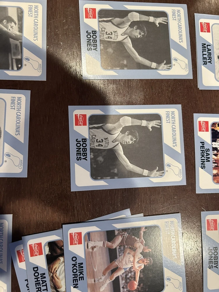 1989 Collegiate Collection Coca Cola North Carolina’s Finest basketball cards - 56 cards Cards are in near mint condition Includes Dean Smith - 2 cards Phil Ford - 2 cards James Worthy - 7 cards Sam Perkins - 2 cards Bobby Jones - 3 cards Billy Cunningham Robert McAdoo - 2 cards J.R. Reid And many more