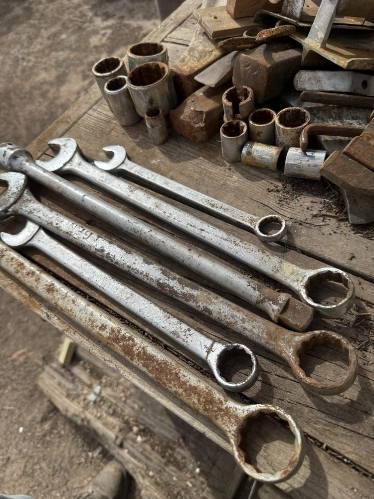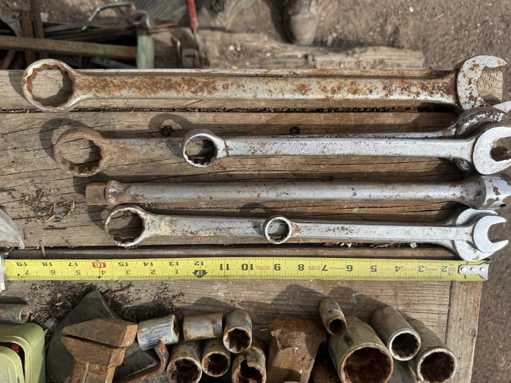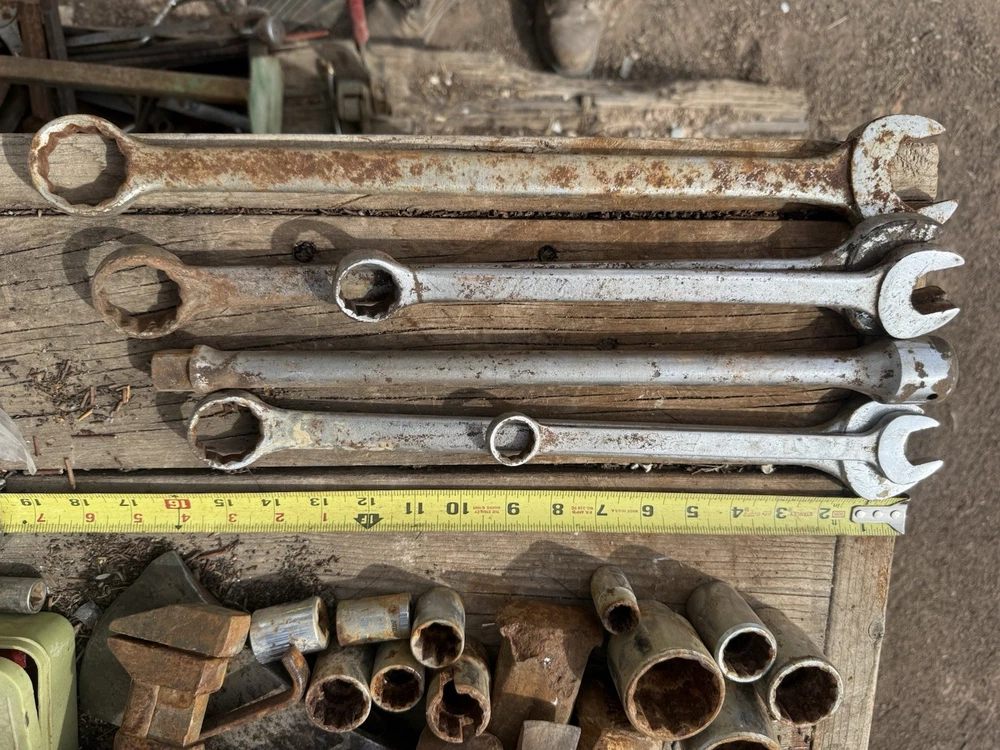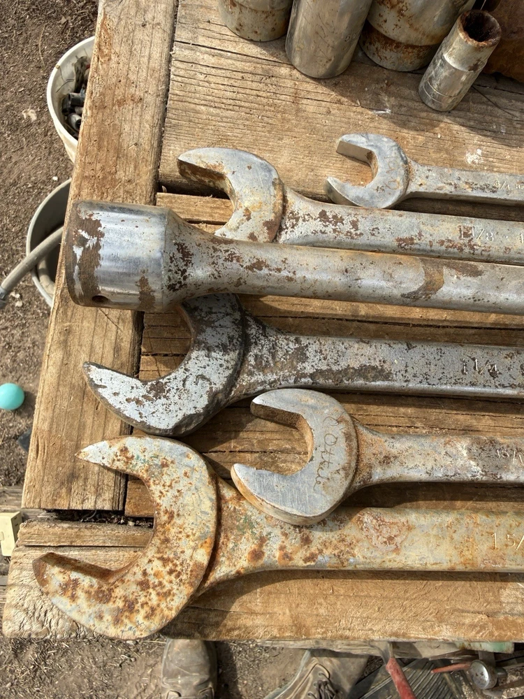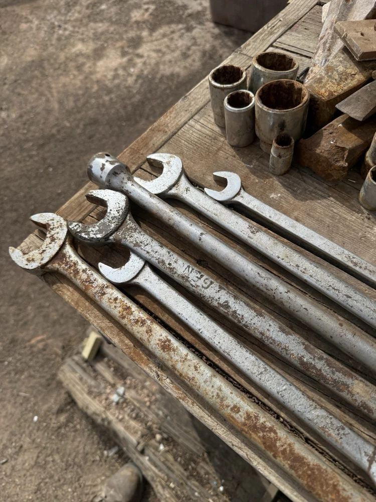 The product is a set of 6 vintage Proto oversized combination wrenches, made in the USA. The set includes several sizes of wrenches, perfect for collectors of vintage tools or mechanics looking for high-quality American-made tools. With the trusted brand of Proto, these wrenches are sure to be durable and reliable for various mechanical tasks. This lot offers a unique opportunity to add some classic tools to your collection or workshop.