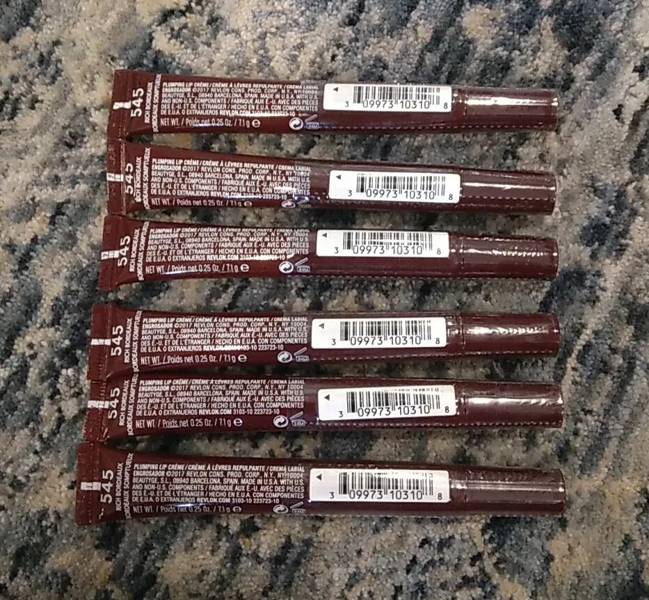 Lot of 6 Revlon Kiss Plumping Lip Creme Rich Bordeaux #545 Lipstick - 0.25 oz