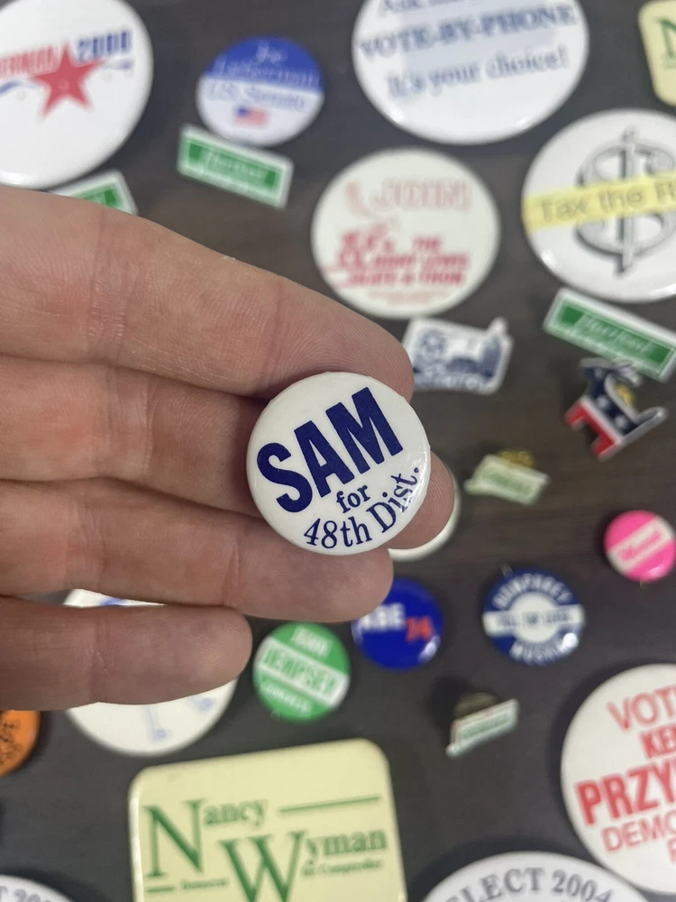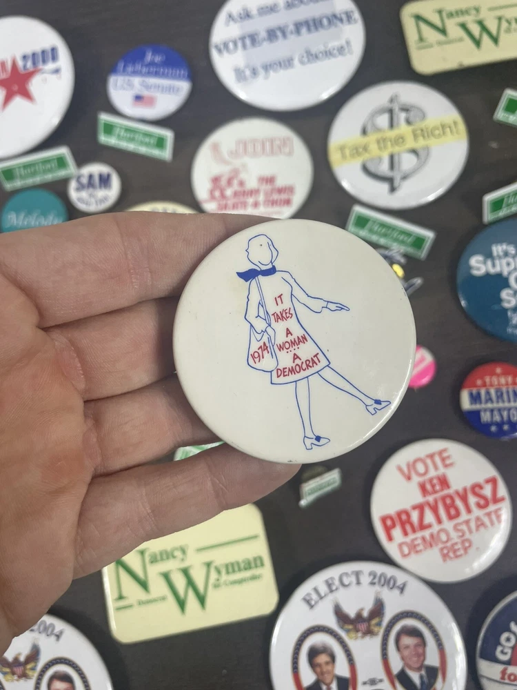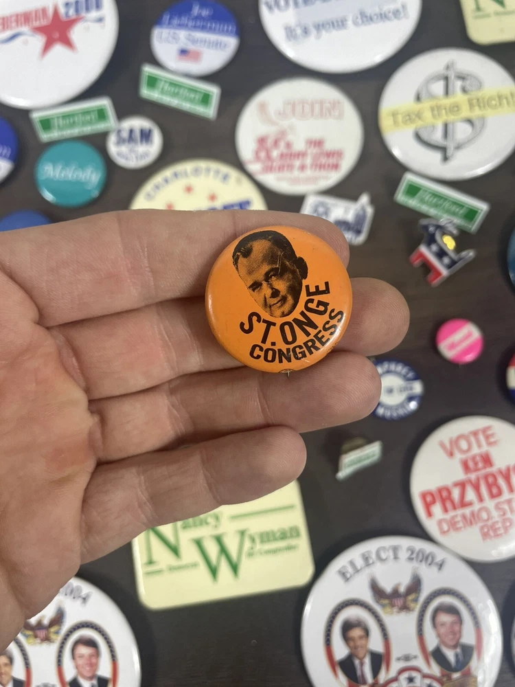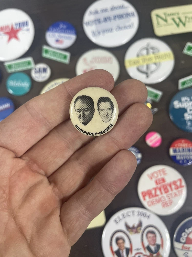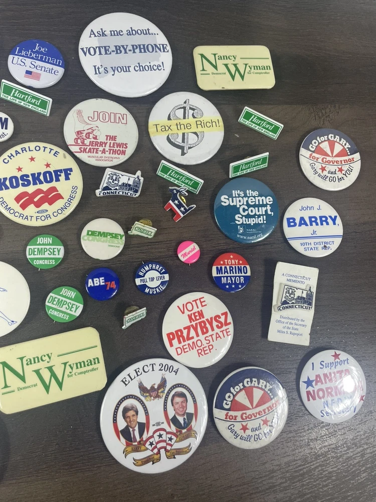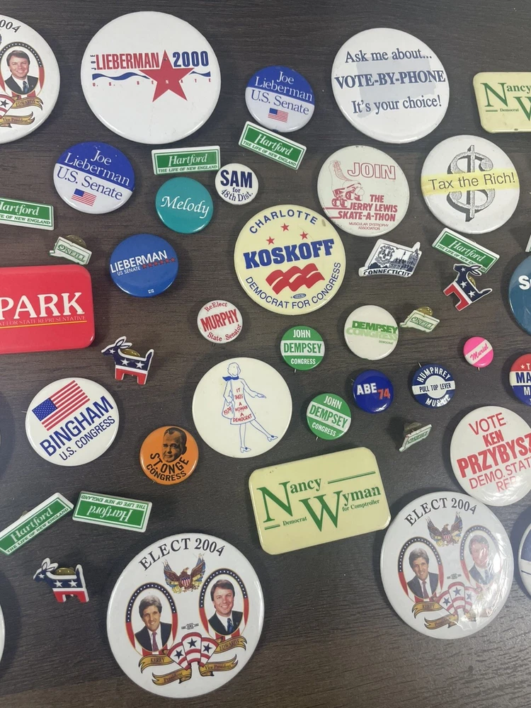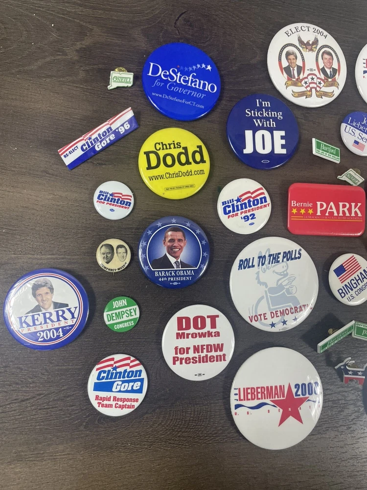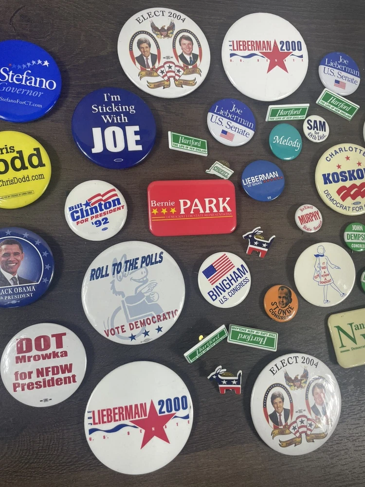 See photos for exact items and condition Massive dealers lot of 64 + vintage political pins !! This is a massive assorted lot of pins you will get all shown plus more! Lots of rare and harder to find ones in here! Assorted sizes Some may be reproductions Completely Unsearched from 1900s-2010s. You’ll get all that you see in photos + Last large lot going up in auction ! I do not have enough left from the storage unit I found these in to fill another auction. THIS WILL BE THE LAST ONE! best of luck to bidders and thank you so much for your bids!
