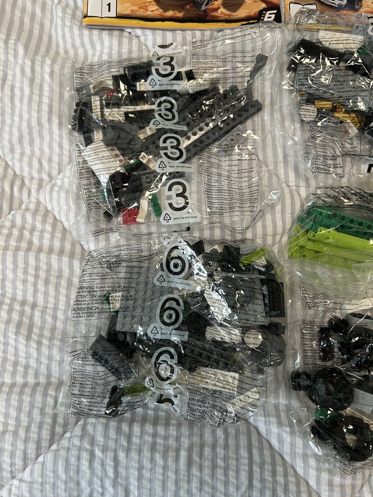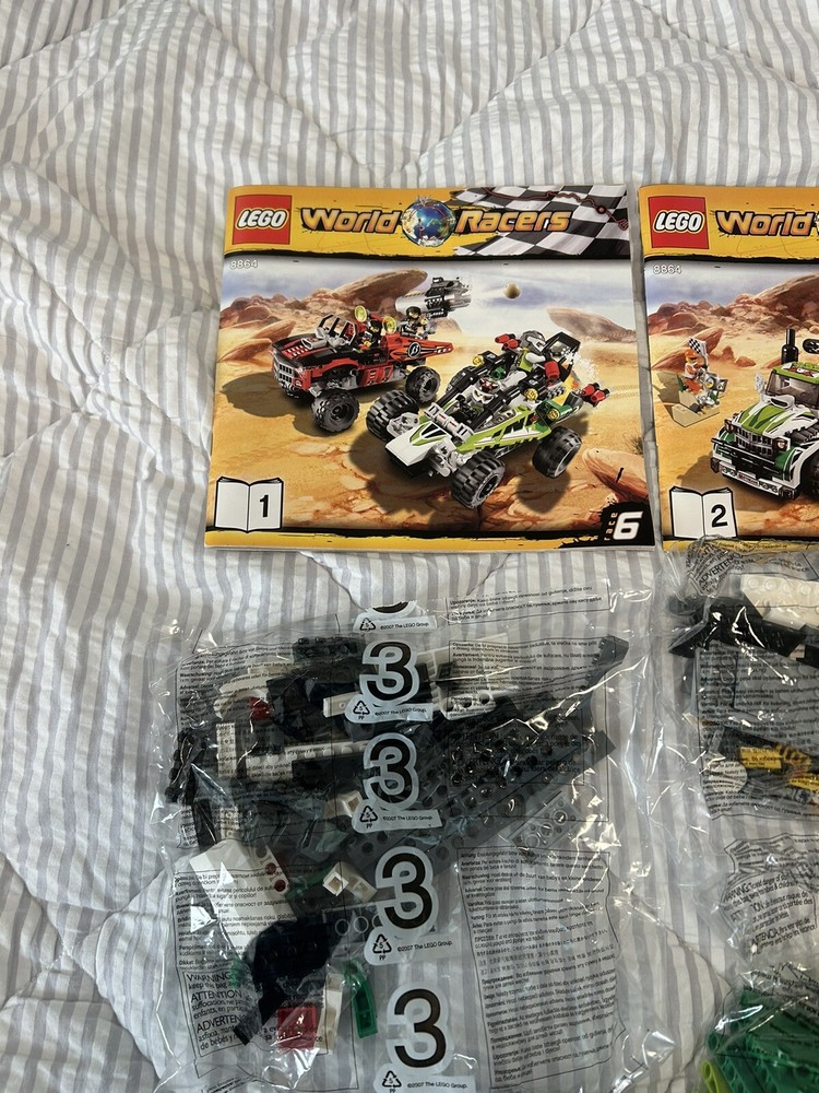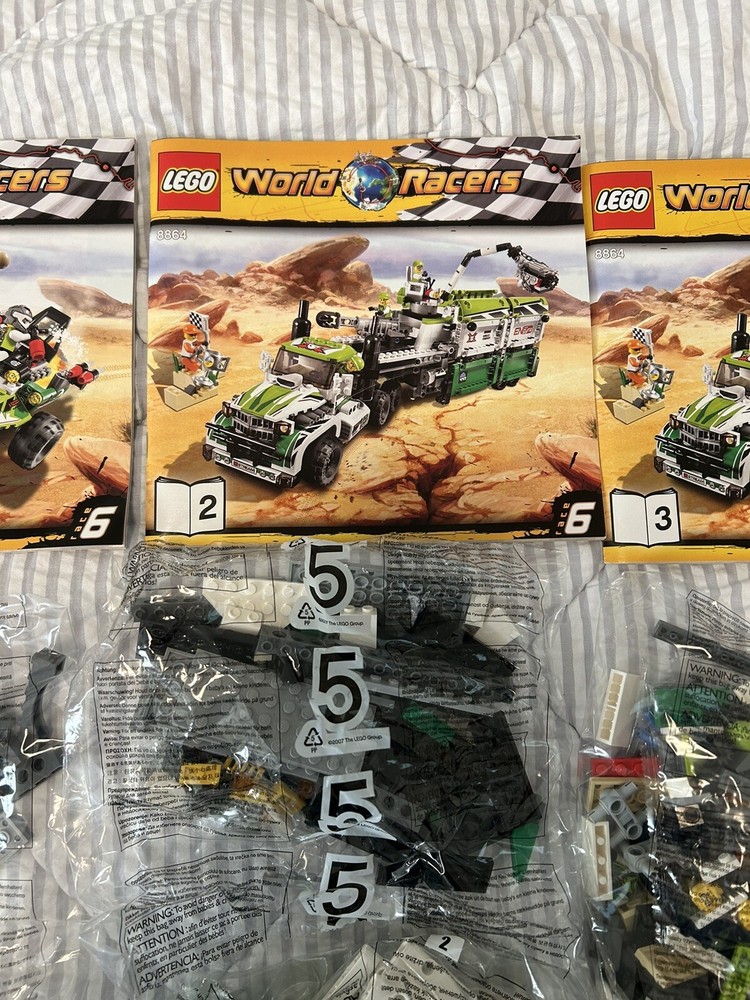 This is an incomplete Lego set 8864. It comes with 7 of the sealed bags (some of which contain some of the minifigures) and 3 manuals. This is not a complete set. To protect the integrity of our inventory and due to this being a sealed Lego product we do not accept returns. All sales are final.