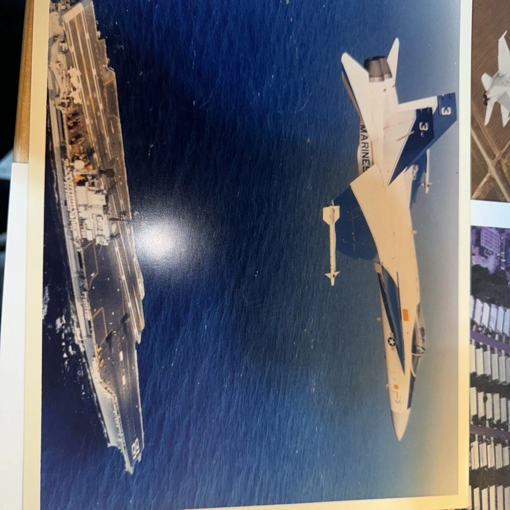 Add to your collection with this lot of 7 vintage military plane photos on Kodak paper. These official navy photos showcase planes and aircraft from World War II (1939-1945) without any damage or wear and tear. Each photograph is in color and printed on high-quality paper, making them perfect for framing or displaying in your home or office. This lot is a great addition for collectors of military history or aviation enthusiasts. The photographs are original and not licensed reprints, adding a unique touch to your collection. Don't miss out on the opportunity to own these historic pieces.