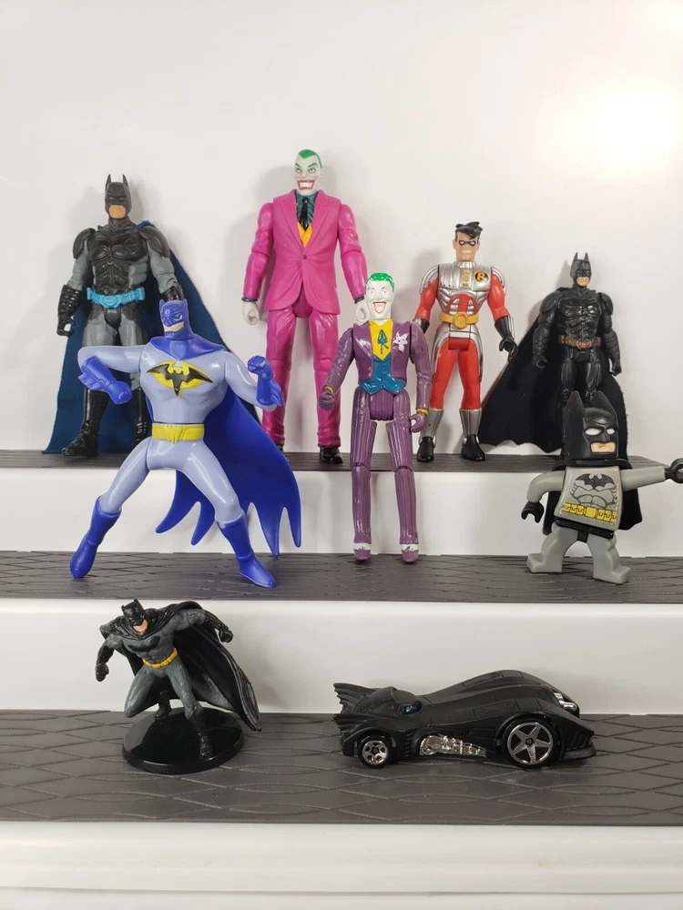Lot of 9- Batman, Joker, Robin, Batmobile Mixed Used. Condition is "Used" with minimal wear. Shipped with USPS Priority Mail.