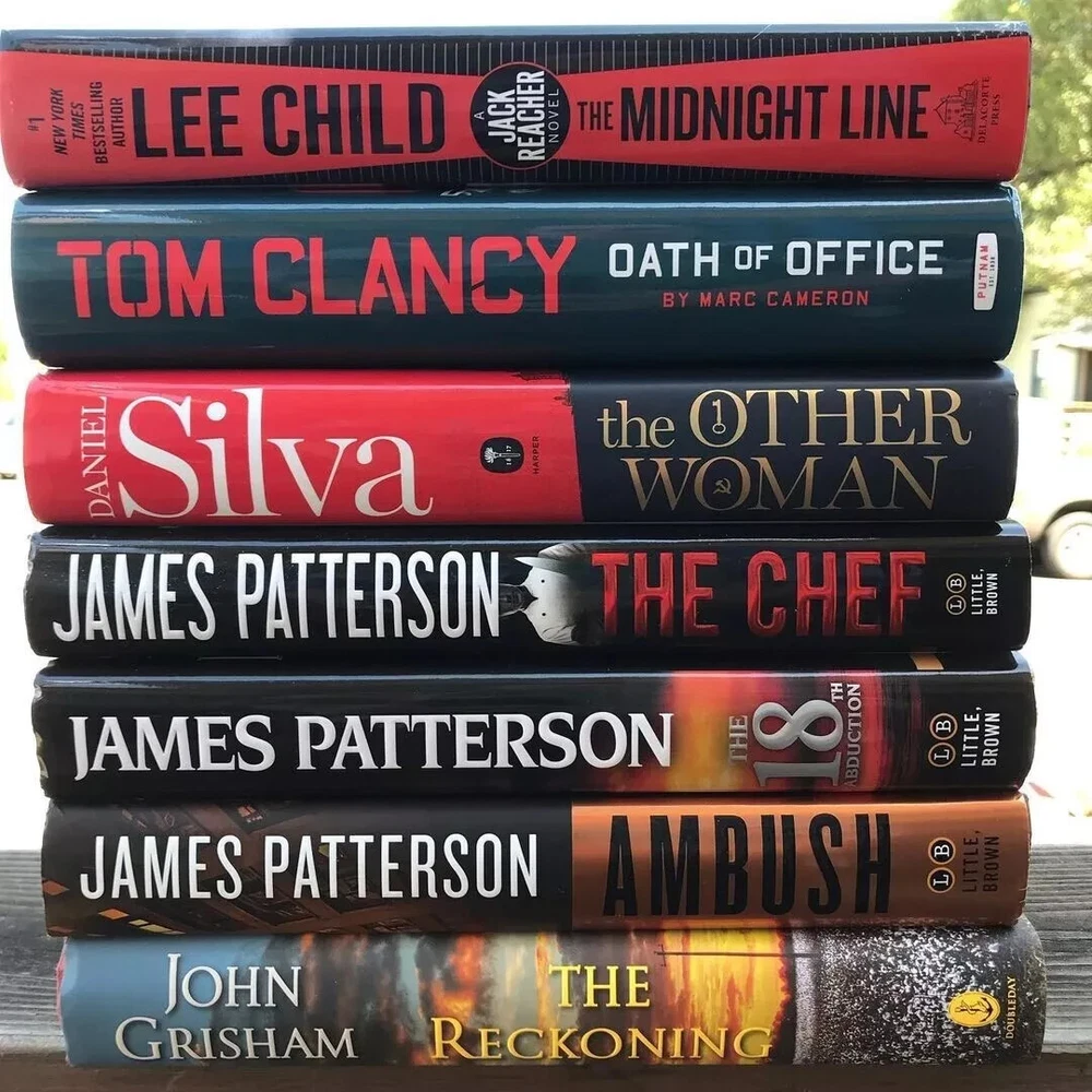 Book Title: Various Genre: Crime & Thriller Type: Novel Format: Hardcover Vintage: No Topic: Boxing, Thriller Author: Clive Cussler, Dan Brown, Frederick Forsyth, James Patterson, Patricia Cornwell, Tom Clancy Narrative Type: Fiction Language: English Original Language: English Literary Movement: Post-Modernism