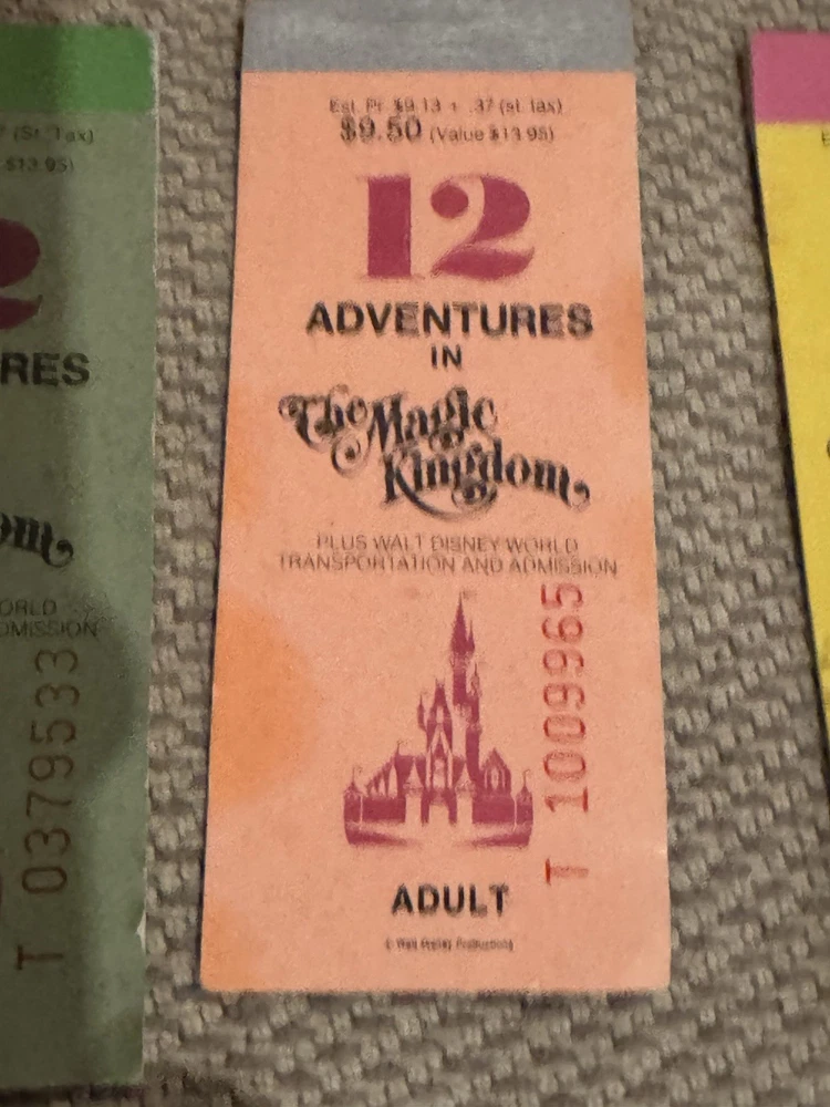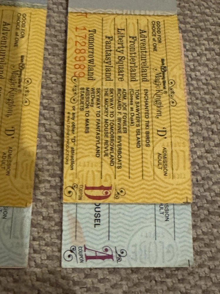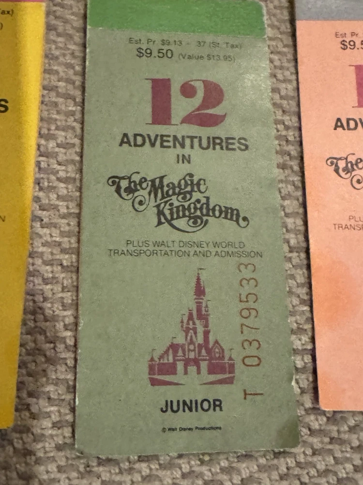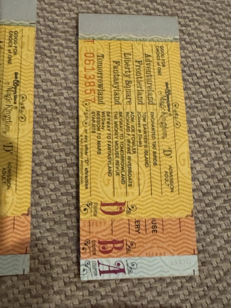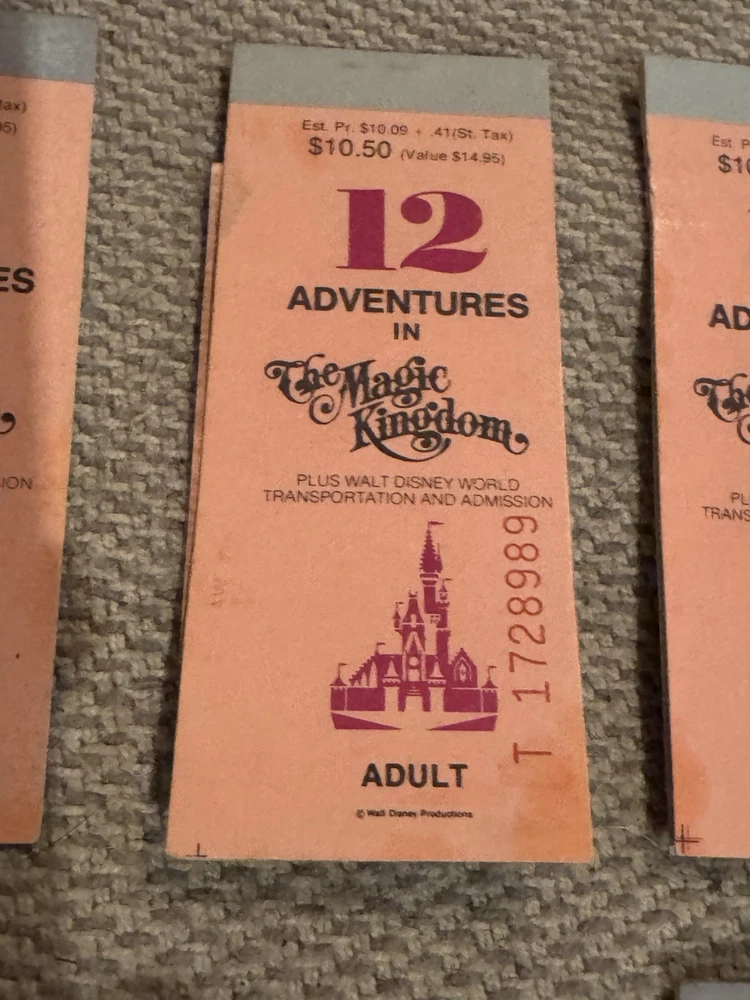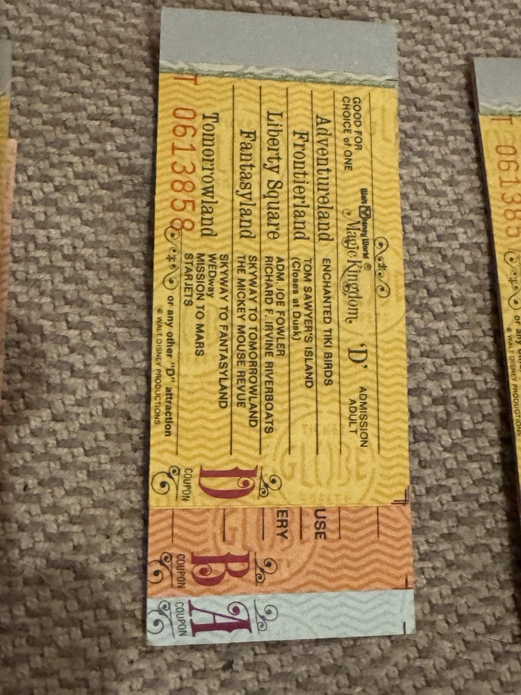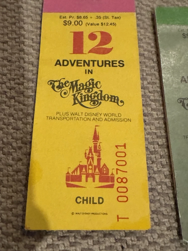 Lot of 9 Original Partial Ticket Coupon Booklets, both for children and for adults, for Disney World and for Disneyland from the late 1970’s. In good condition. Please see our pictures. Will ship promptly. Manila envelope video game cabinet