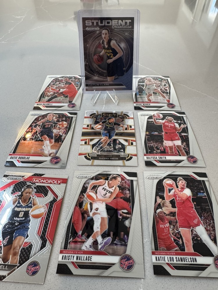 Elevate your WNBA collection with this exclusive Lot of 9 Indiana Fever sports trading cards, featuring the standout player Caitlin Clark. Each card is a genuine piece of basketball memorabilia, crafted from quality card stock and designed to capture the essence of the sport. As part of a limited set, these cards are a must-have for enthusiasts and collectors alike. With careful curation, this assortment showcases the skill and spirit of the Indiana Fever team, making it an exceptional find for fans. Produced in the United States, the collection is a modern tribute to the game, emphasizing its dynamic and vibrant culture. Add this unique set to your collection and celebrate the legacy of women's basketball.