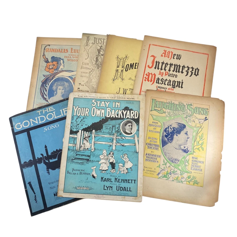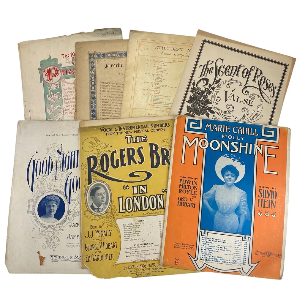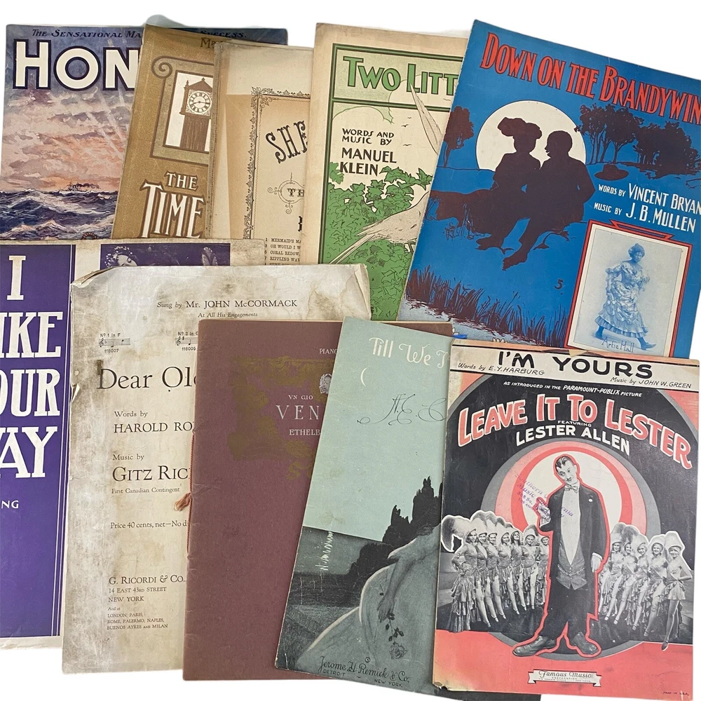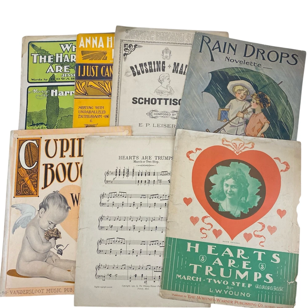 Dive into a treasure trove of musical history with this extensive lot of over 90 vintage sheet music pieces. Signs of wear, stains, rips present. Each piece is a testament to the golden age of piano vocals and musicals, offering a unique glimpse into the past with its very worn pages telling stories of performances and practices. The collection features an eclectic mix, showcasing a wide range of genres and composers. It's an ideal find for collectors, musicians, or anyone with an appreciation for the tactile beauty of analog music. Whether for performance, display, or research, these sheets are a tangible link to musical heritage.
