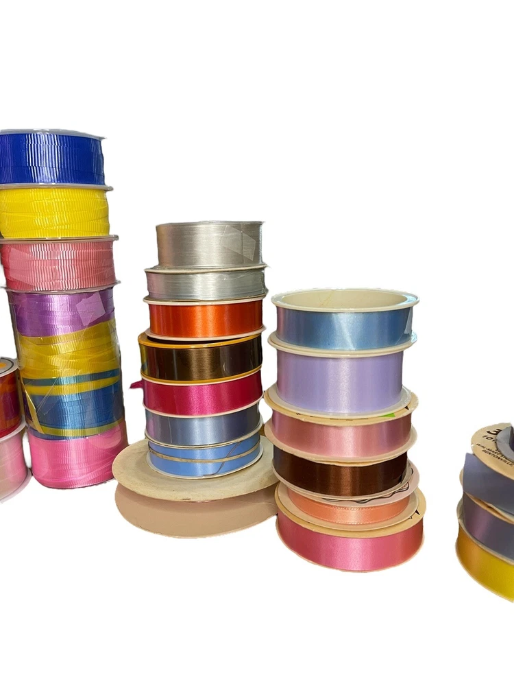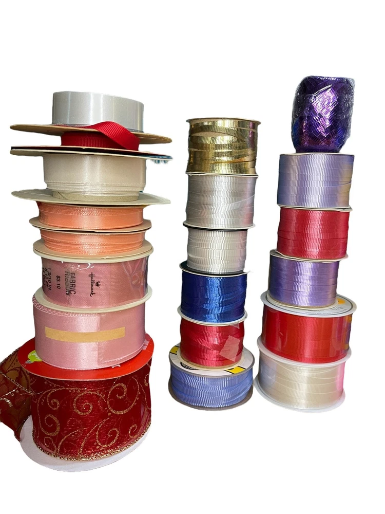 Some are brand new and never used and some have been opened and used. Some are fabric and some are plastic. This lot of 42 ribbon spools in various sizes and colors is perfect for all your crafting needs. Whether you're making bows for scrapbooking or using them for other crafting projects, this lot has something for everyone. The ribbons are made of high-quality materials and are sure to add a touch of elegance to any project. With a custom bundle of ribbons, this lot is a great choice for anyone looking to expand their crafting supplies. The variety of widths and ribbon types makes them perfect for creating unique and stylish designs. Don't miss out on this opportunity to add some special flair to your crafting projects.
